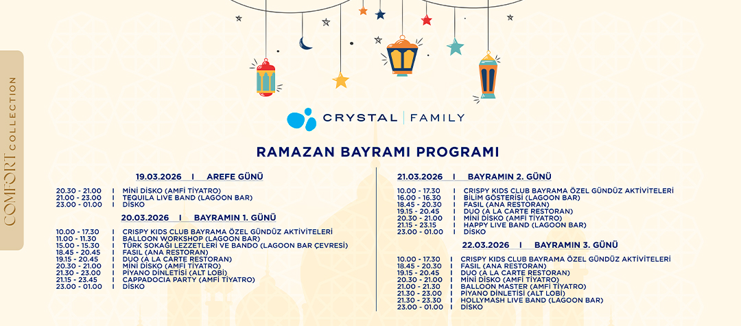 *A'la carte restoranlar da 3 gece ve üzeri konaklamalarda bir restoran bir kereliğine ücretsizdir.