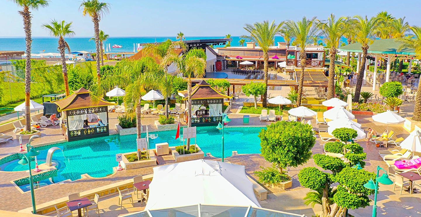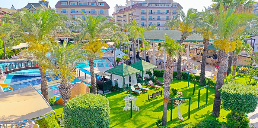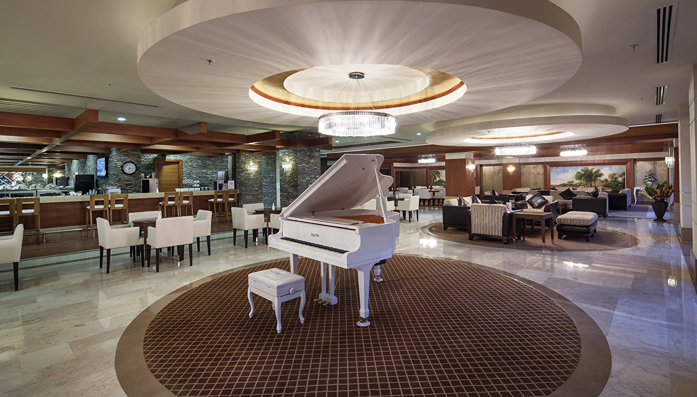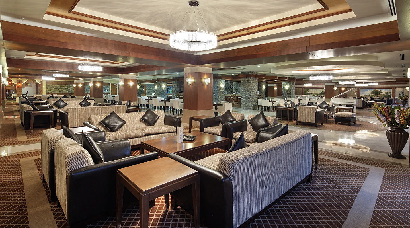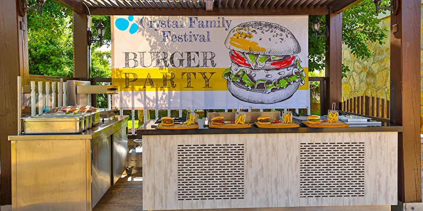 Sabah kahvaltısı, öğle ve akşam yemekleri açık büfe olup tesisin belirlediği markalar dahilinde yerli alkollü ve alkolsüz içecekler 24 saat ücretsizdir. Uluslararası yöresel kahveler ücretsizdir. Taze sıkılmış Sebze, Meyve Suları ve Enerji içecekleri, Tüm şişeli alkollü ürünler, tüm özel yerli-yabancı şaraplar ve şampanyalar, alkollü Premium içkiler (10 ve 12 yıllık ve üstü VSOP, XO Konyaklar), Alakart Restoranlarda tüm şarap, şampanya ve özel yemek siparişleri ekstra ücret ile servis edilmektedir. (Sofra Şarabı Hariç)