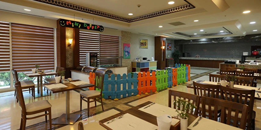 Ana Restoranda diyet, vejeteryan, yöresel temalı yiyecekler, çocuk büfesi bulunmaktadır.