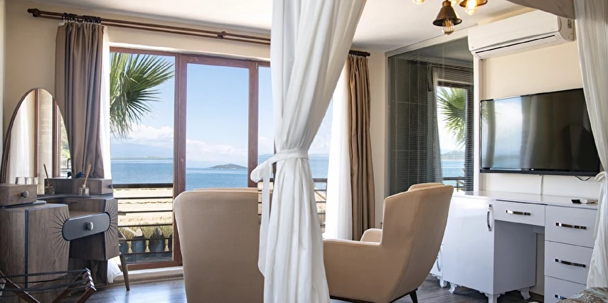 Tüm odalarımız deniz manzaralı olup 4 odamız özel panoramatik görünümüne sahiptir.