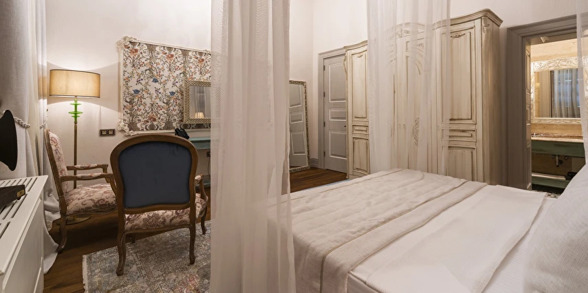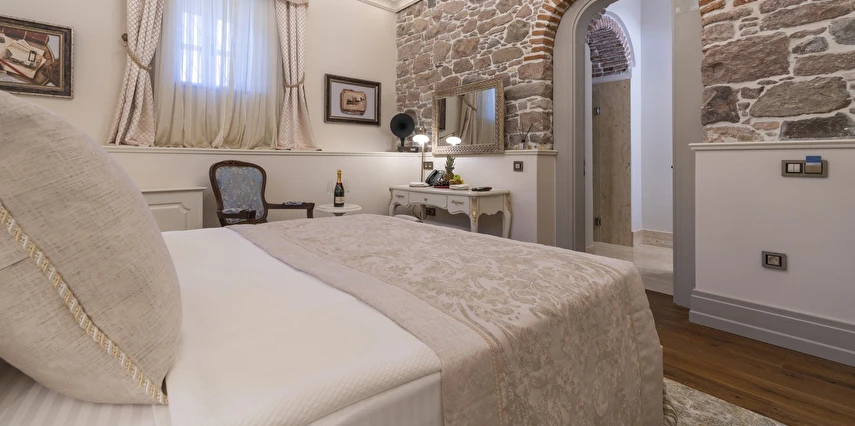 Tesisin her biri özenle dekore edilmiş odaları; taş duvarlar, yüksek tavanlar ve geleneksel detaylarla harmanlanmış modern konfor unsurlarını bir arada sunar. Odalarda konforlu yataklar, klima, ücretsiz Wi-Fi, özel banyo ve ihtiyaç duyabileceğiniz temel olanaklar bulunmaktadır. Bazı odalar Cunda sokaklarına veya iç avluya bakarak huzurlu bir konaklama imkânı sağlar.