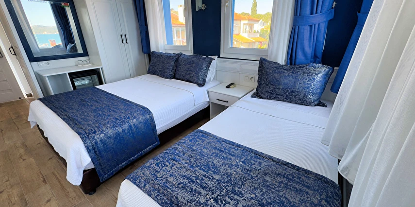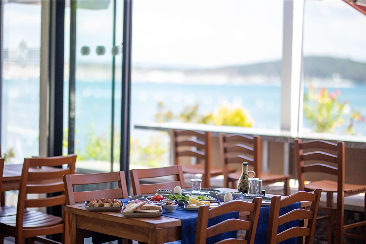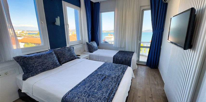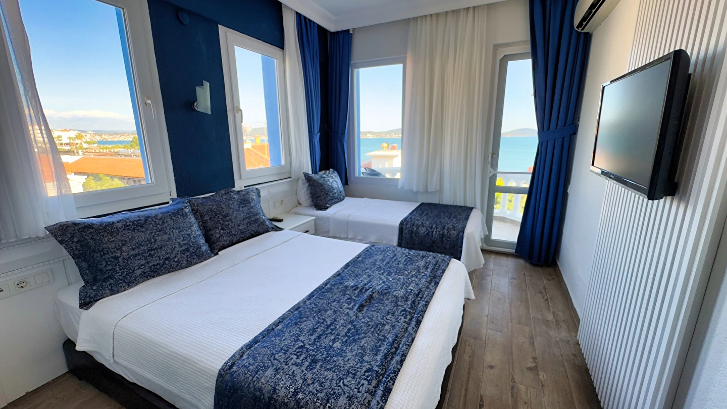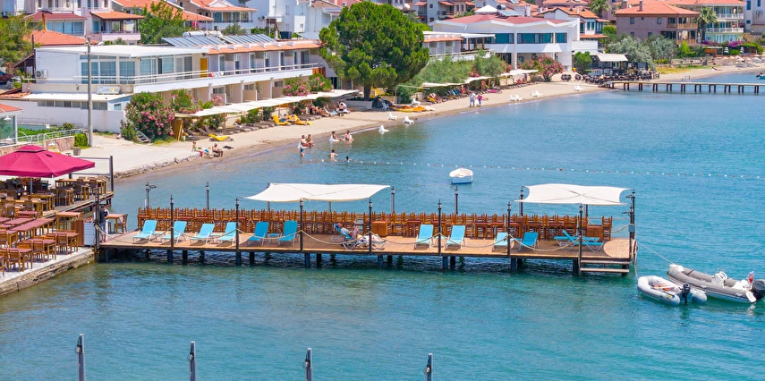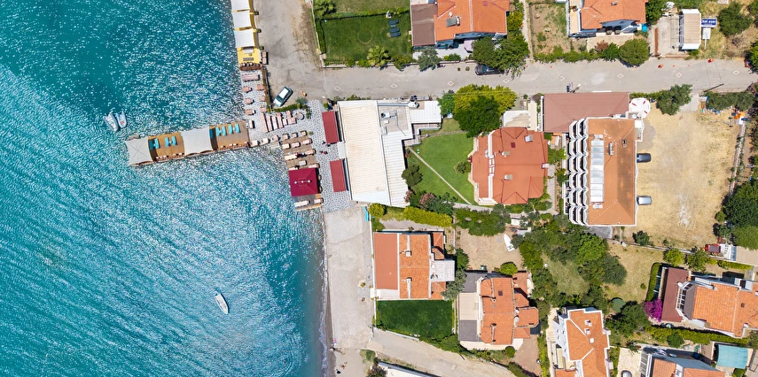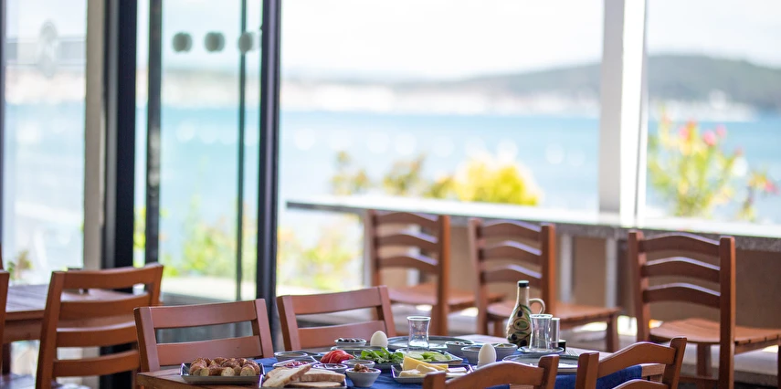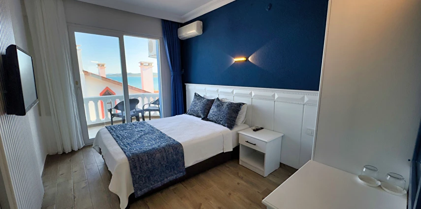 Denize sıfır konumu ile misafirlerine keyifli bir tatil vadeden Ezer Otel, sade dekore edilmiş ev sıcaklığındaki odalarıyla hizmet veriyor. Tesisin tüm odalarında; bahçe veya deniz manzarası, minibar, duşakabin, klima, LCD TV, uydu yayını, buklet banyo ürünleri ve saç kurutma makinesi mevcut. Misafirler tesise ait özel plajda denizin ve güneşin tadını çıkarabilir. Plaj 06.00-18.00 arası kullanılabiliyor. Enfes deniz mahsulleri ve taze mezelerin sunulduğu Teos Restoran’da birbirinden güzel lezzetler tadılabilir. Tesiste ayrıca; çamaşırhane, otopark, kablosuz internet, resepsiyon hizmeti, ücretli havalimanı servisi gibi olanaklar da bulunuyor. Ezer Otel, Ayvalık Otogarı’na 7 km, Edremit Körfez Havalimanı'na ise 46 km mesafede konumlanıyor. 1 Temmuz 30 Ağustos tarihleri arasında 0-4 yaş arası Çocuklu aile kabul edilmemektedir. Ege'nin incisi Cunda Adası'nda olup, merkeze yürüyüş mesafesinde yer alan Ezer Otel, misafirlerine denize sıfır konumu ve konforlu odaları ile eğlenceli bir tatil vadediyor. Denize sıfır konumu ile misafirlerine keyifli bir tatil imkanı sunan tesis, sade dekore edilmiş ev sıcaklığındaki odalarıyla hizmet veriyor.