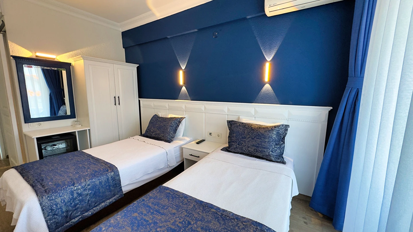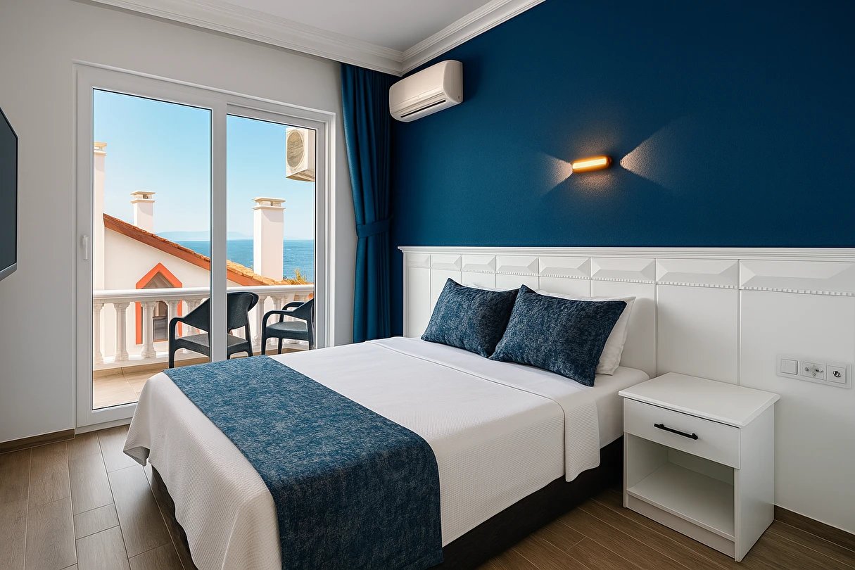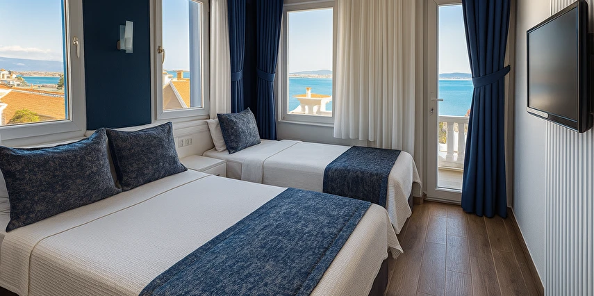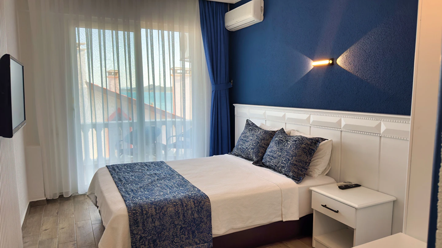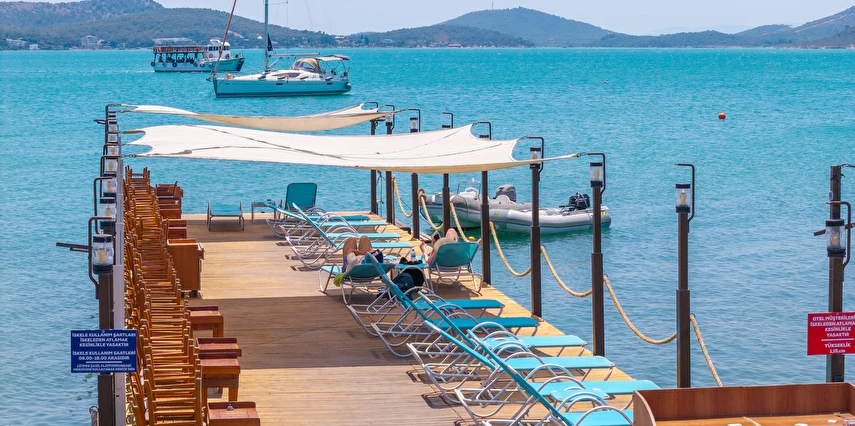 Denize sıfır konumu ile misafirlerine keyifli bir tatil vadeden Ezer Otel, sade dekore edilmiş ev sıcaklığındaki odalarıyla hizmet veriyor. Tesisin tüm odalarında; bahçe veya deniz manzarası, minibar, duşakabin, klima, LCD TV, uydu yayını, buklet banyo ürünleri ve saç kurutma makinesi mevcut. Misafirler tesise ait özel plajda denizin ve güneşin tadını çıkarabilir. Plaj 06.00-18.00 arası kullanılabiliyor. Enfes deniz mahsulleri ve taze mezelerin sunulduğu Teos Restoran’da birbirinden güzel lezzetler tadılabilir. Tesiste ayrıca; çamaşırhane, otopark, kablosuz internet, resepsiyon hizmeti, ücretli havalimanı servisi gibi olanaklar da bulunuyor. Ezer Otel, Ayvalık Otogarı’na 7 km, Edremit Körfez Havalimanı'na ise 46 km mesafede konumlanıyor. 1 Temmuz 30 Ağustos tarihleri arasında 0-4 yaş arası Çocuklu aile kabul edilmemektedir. Ege'nin incisi Cunda Adası'nda olup, merkeze yürüyüş mesafesinde yer alan Ezer Otel, misafirlerine denize sıfır konumu ve konforlu odaları ile eğlenceli bir tatil vadediyor. Denize sıfır konumu ile misafirlerine keyifli bir tatil imkanı sunan tesis, sade dekore edilmiş ev sıcaklığındaki odalarıyla hizmet veriyor.