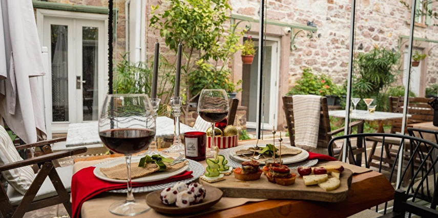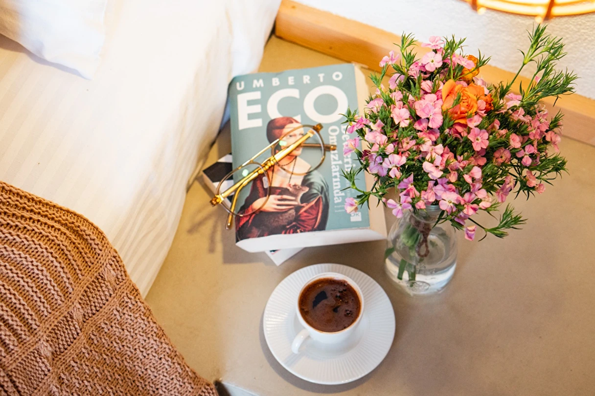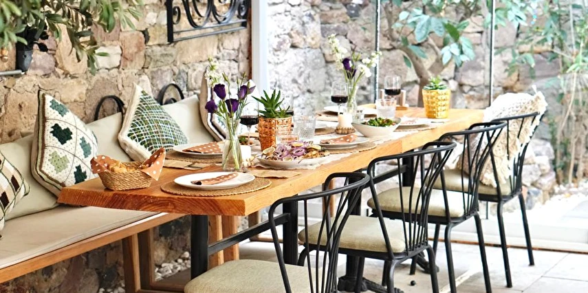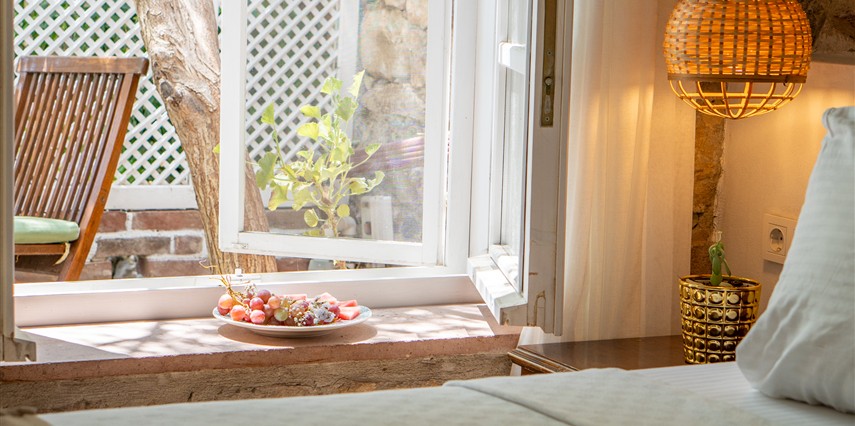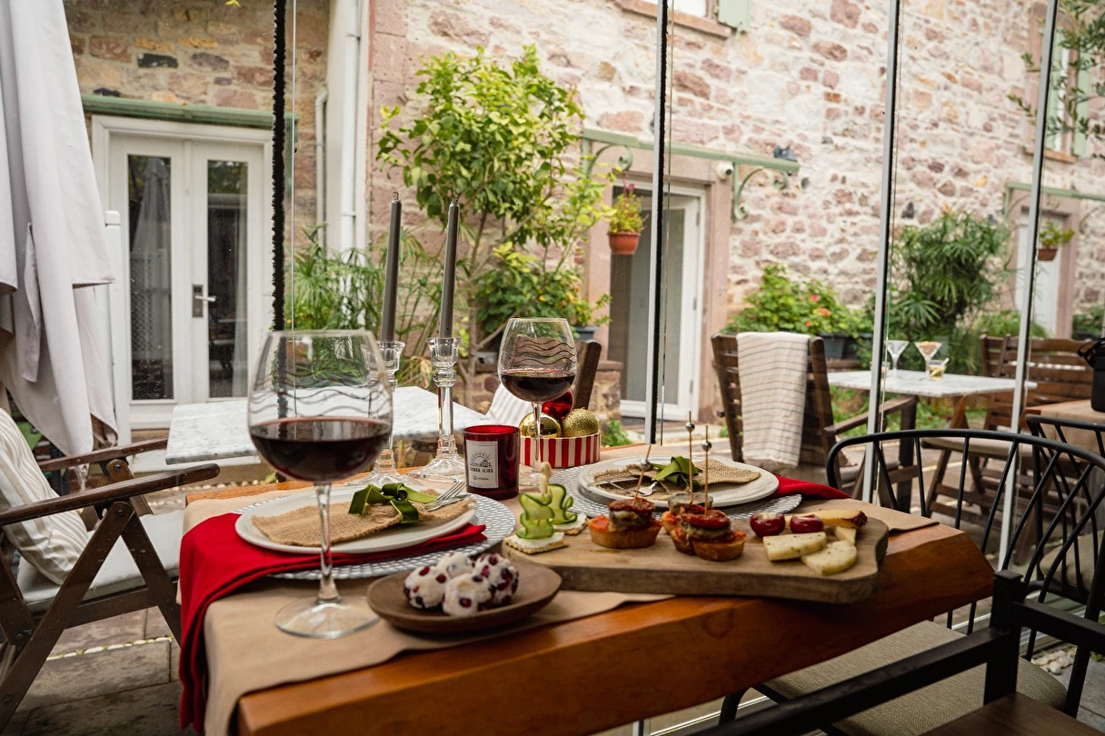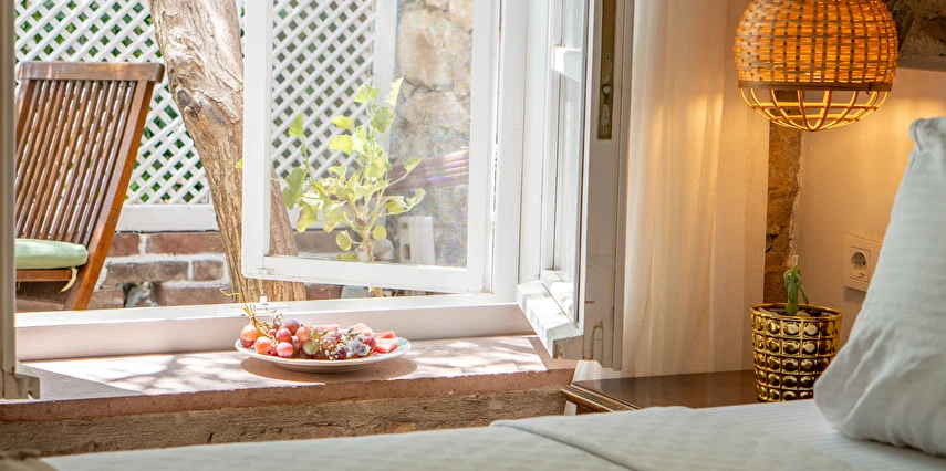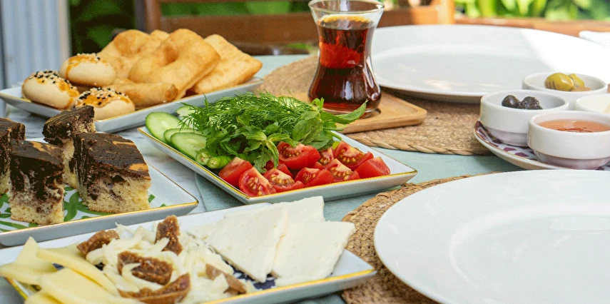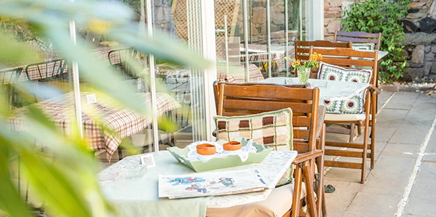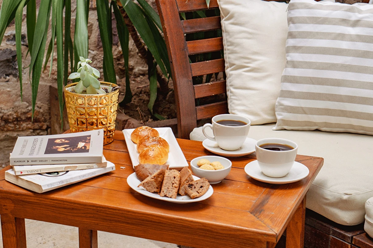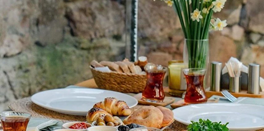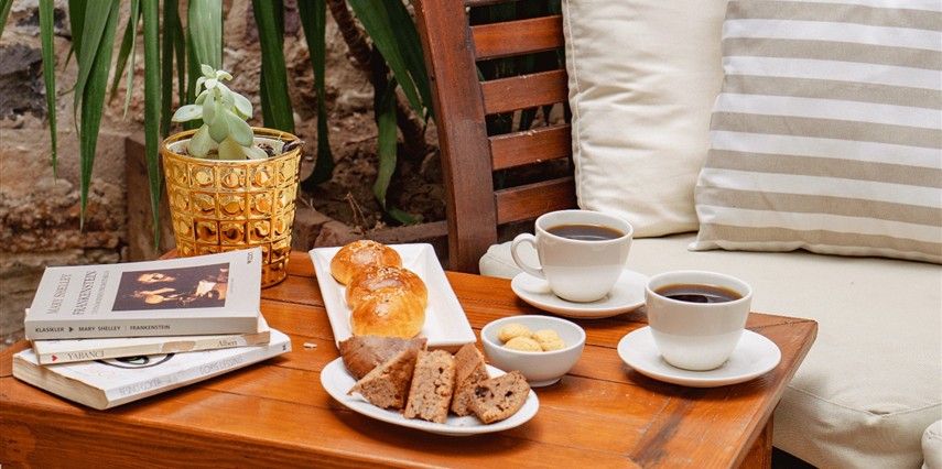 Misafirlerimiz için taş otelimizin nostaljik dokusunu koruyan butik mutfağında ve bahçesinde deneyimleyeceğiniz keyifli bir kahvaltı ve ikram menüsü düzenledik. Gün boyunca Kuzey Ege’ye ait taze ve ev yapımı ürünlerden oluşan yiyecek ve içecek menümüzden faydalanabilirsiniz.