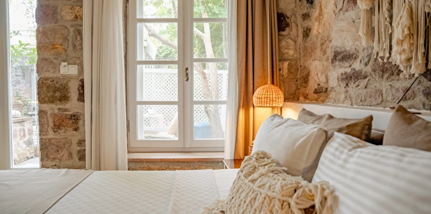 Misafirlerimiz için taş otelimizin nostaljik dokusunu koruyan butik mutfağında ve bahçesinde deneyimleyeceğiniz keyifli bir kahvaltı ve ikram menüsü düzenledik. Gün boyunca Kuzey Ege’ye ait taze ve ev yapımı ürünlerden oluşan yiyecek ve içecek menümüzden faydalanabilirsiniz.