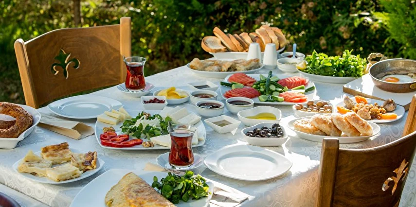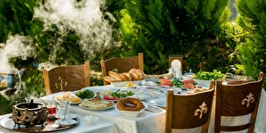 Bahçemizde el yapımı zengin kahvaltı çeşitleri ile güne mutlu ve huzurlu başlamanın keyfini yaşatmaktadır.