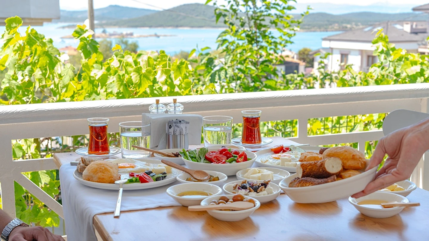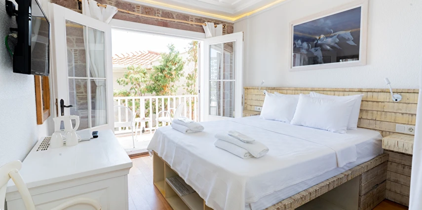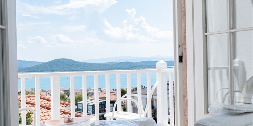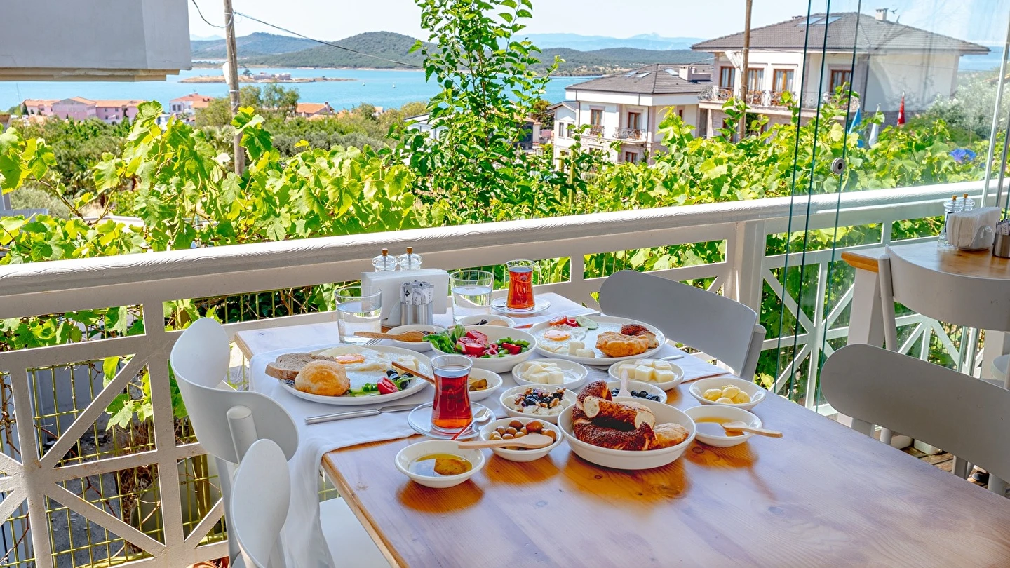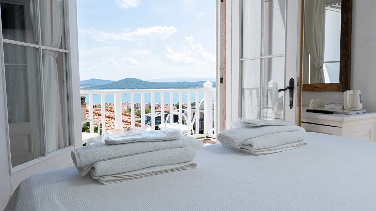 Cunda (Alibey) Adası’nda denizin maviliklerine komşu olabileceğiniz eşsiz bir tatil merkezi olan Cunda Pür Beyaz Hotel, adanın merkezine, kaliteli restoranlara, gezilip görülebilecek alanlara ve alışveriş yapabileceğiniz noktalara yürüme mesafesinde yer alıyor. Cunda’nın simgelerinden olan Yel Değirmeni’ne oldukça yakın olan otel çevresinde konumlanan, Taksiyarhis Anıt Müzesi, Ayvalık Ayazması, Macaron Mahallesi, Çınarlı Camii, Taksiyarhis Kilisesi, Ayvalık Amfi Tiyatro, Cennet Tepesi, Hayrettin Paşa Camii, Saatli Camii, Ayvalık Adaları Tabiat Parkı, Şeytan Sofrası gibi kültürel, doğal ve tarihi yerlere ve Sarımsaklı Plajı, Kesebir Plajı, Çataltepe Plajı ve Ortunç Koyu’na giderek, bölgeyi keşfedebilirsiniz. Tek tip konaklama biçiminin bulunduğu tesiste güne serpme kahvaltı ile enerjik bir şekilde başlayabilirsiniz. Akşamları ise, çevrede hizmet veren restoranlarda Türk yemeklerinden dünya mutfağına kadar birçok menüyü deneyebilirsiniz. Cunda Piano Otel civarında sevdiklerinize hediyelik eşya satın alabileceğiniz birçok yer bulunuyor. Bununla birlikte otelinizde yürüyerek gidebileceğiniz kafeler ve eğlence mekanları da sizleri bekliyor.
