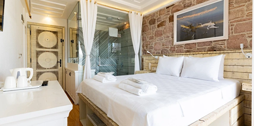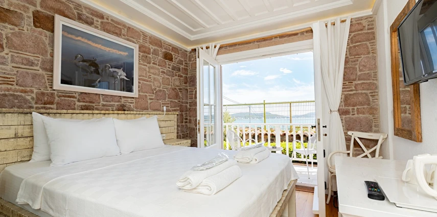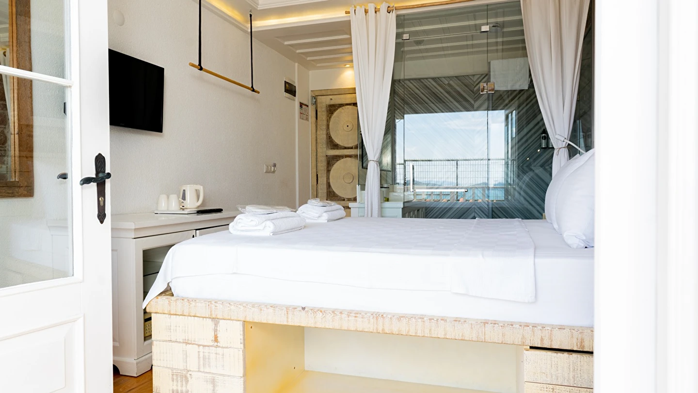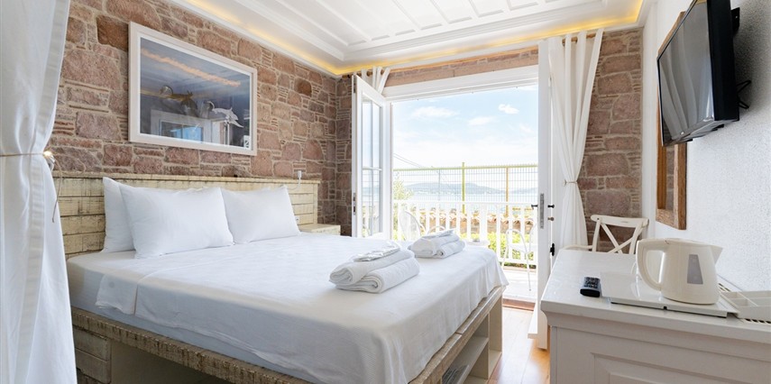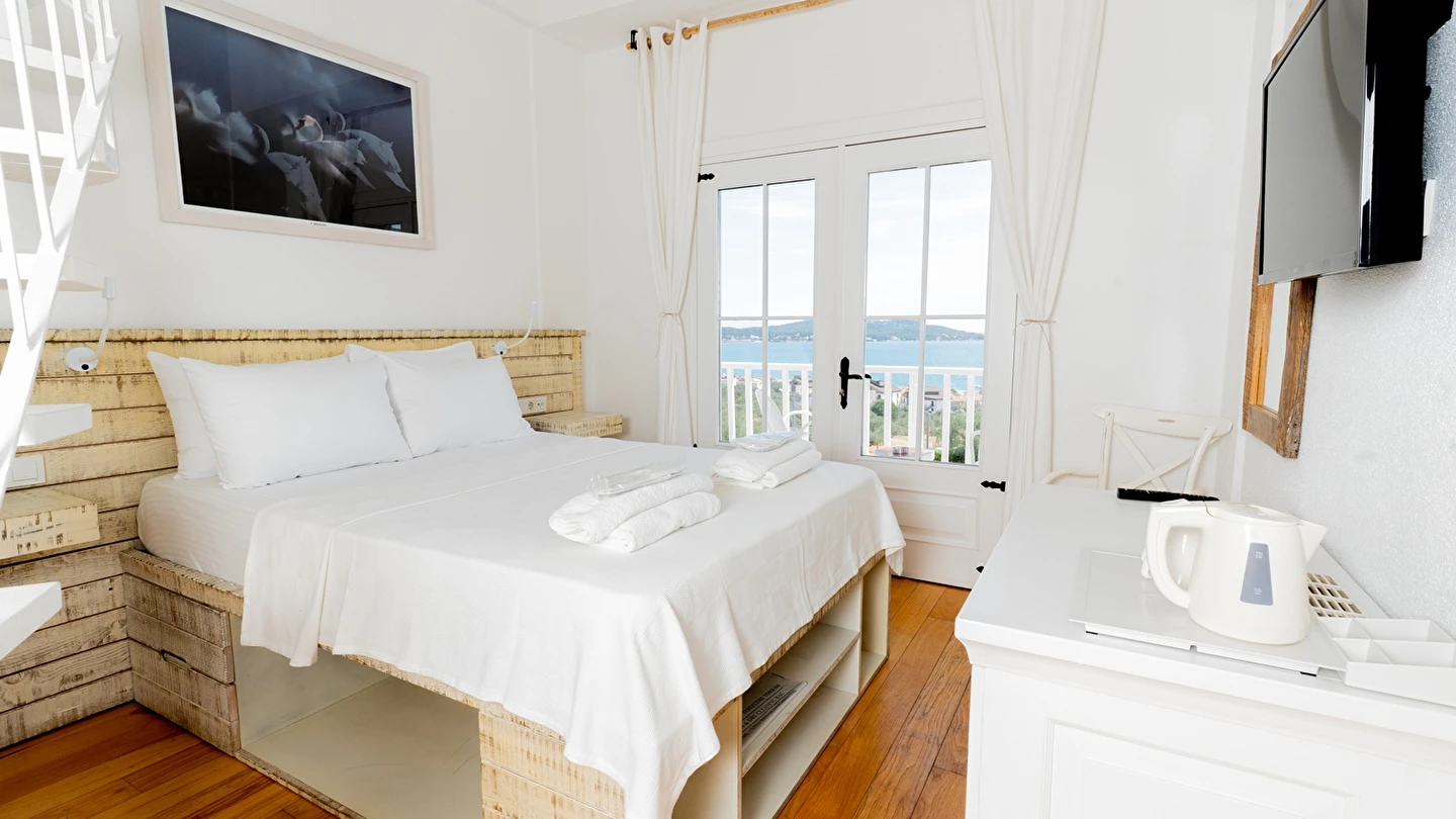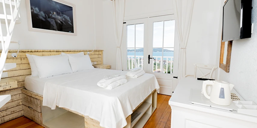 Cunda (Alibey) Adası’nda denizin maviliklerine komşu olabileceğiniz eşsiz bir tatil merkezi olan Cunda Pür Beyaz Hotel, adanın merkezine, kaliteli restoranlara, gezilip görülebilecek alanlara ve alışveriş yapabileceğiniz noktalara yürüme mesafesinde yer alıyor. Cunda’nın simgelerinden olan Yel Değirmeni’ne oldukça yakın olan otel çevresinde konumlanan, Taksiyarhis Anıt Müzesi, Ayvalık Ayazması, Macaron Mahallesi, Çınarlı Camii, Taksiyarhis Kilisesi, Ayvalık Amfi Tiyatro, Cennet Tepesi, Hayrettin Paşa Camii, Saatli Camii, Ayvalık Adaları Tabiat Parkı, Şeytan Sofrası gibi kültürel, doğal ve tarihi yerlere ve Sarımsaklı Plajı, Kesebir Plajı, Çataltepe Plajı ve Ortunç Koyu’na giderek, bölgeyi keşfedebilirsiniz. Tek tip konaklama biçiminin bulunduğu tesiste güne serpme kahvaltı ile enerjik bir şekilde başlayabilirsiniz. Akşamları ise, çevrede hizmet veren restoranlarda Türk yemeklerinden dünya mutfağına kadar birçok menüyü deneyebilirsiniz. Cunda Piano Otel civarında sevdiklerinize hediyelik eşya satın alabileceğiniz birçok yer bulunuyor. Bununla birlikte otelinizde yürüyerek gidebileceğiniz kafeler ve eğlence mekanları da sizleri bekliyor.