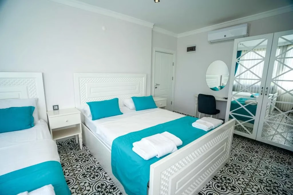 – Konforlu ve modern odalar: Otelimizin geniş ve ferah odaları, her türlü ihtiyacınızı karşılayacak şekilde tasarlanmıştır. Odalarımızda, balkon, deniz manzarası, klima, Wi-Fi, LCD TV ve mini bar gibi birçok imkan sizleri bekliyor.