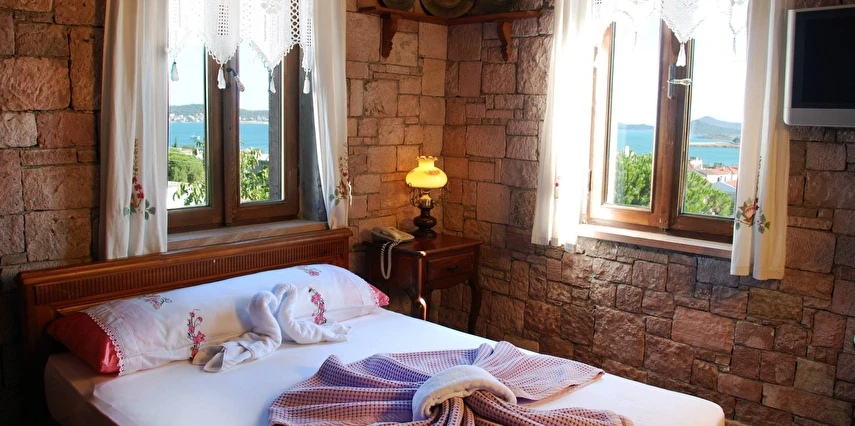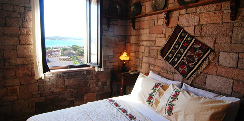 Cunda Taş Konak Hotel, Ayvalık’ın kendine özgü mimarisi ve huzurlu atmosferiyle eşi bulunmaz tatil beldesi Cunda’da bir taş konakta misafirlerini ağırlıyor. Sabahları kahvaltı servisi sunan tesis Cunda plajlarına ve merkeze yürüme mesafesinde yer alıyor. Cunda Taş Konak Hotel, adanın mimarisine uygun bir taş konakta misafirlerini birbirinden şık ve romantik odalarında ağırlıyor. Tesisin odalarında; ahşap mobilyalar, minibar, banyo, uydu yayını, LCD TV ve saç kurutma makinesi bulunuyor. Tesis, sabahları zengin bir kahvaltı servisi sunuyor. Geniş yeşil bahçe, ücretsiz kablosuz internet, otopark ve çamaşırhane, tesisin sunduğu diğer ayrıcalıklar olarak öne çıkıyor.Tesiste çocuk misafir kabul edilmemektedir. Ayvalık'a bir köprü ile bağlı olsa da içinde özgürlüğü barındıran Taş Konak Hotel, Cunda Adası'nda misafirlerine tarih kokan bir konakta konforlu bir tatil sunuyor.