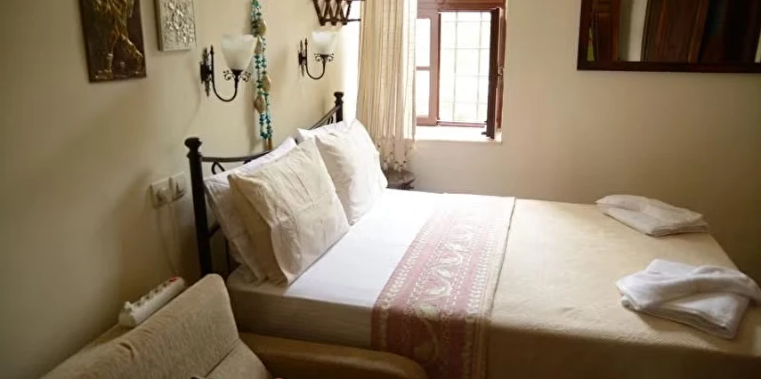 Tarihi Taksiyarhis Kilisesi'nin bahçesinde yer alan restore edilmiş bu otelde oturma alanlı yeşil bir bahçe bulunmaktadır. Otelin tüm alanlarında geleneksel bir dekorasyon hakimdir