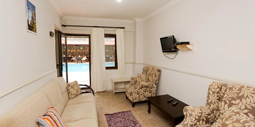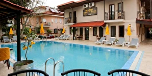 Dalyan'da küçük aile oteli. Merkeze birkaç dakika yürüme mesafesinde, nehrin yakınında, alışveriş mekanlarına ve restoranlara yakın. Yatak odası ve geniş oturma odası bulunan 8 dubleks oda (2-4 kişilik), 5 kişiye kadar kapasiteli 2 büyük aile odası. Dubleks odalarımızın tamamında balkon bulunmaktadır. Aile odaları havuza yakın zemin katta bulunmaktadır.