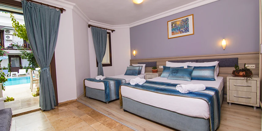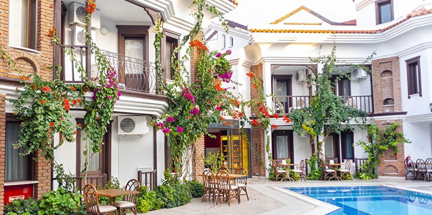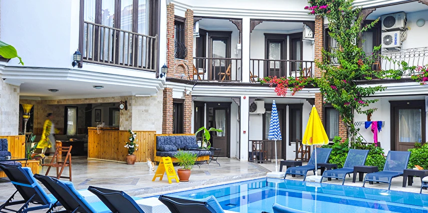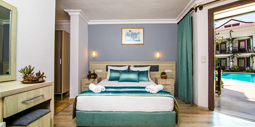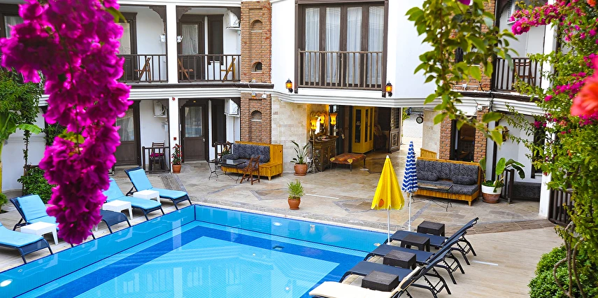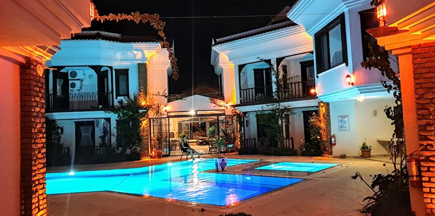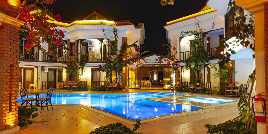 Dalyan’ın muhteşem doğasında, huzur dolu bir tatil atmosferi sunan tesis, rengarenk çiçeklerle süslü bahçesi ile hizmet veriyor. Tesiste misafirlerin güneşin adını çıkarabilecekleri 2 adet açık havuz bulunuyor. Dalyan’ın muhteşem doğasında, huzur dolu bir tatil atmosferi sunan tesis, rengarenk çiçeklerle süslü bahçesi ile hizmet veriyor. Tesiste misafirlerin güneşin adını çıkarabilecekleri açık havuz bulunuyor.