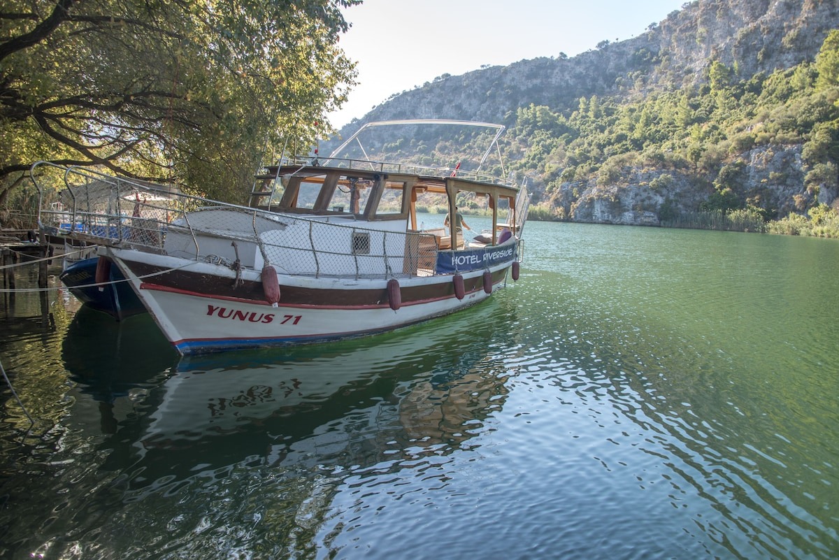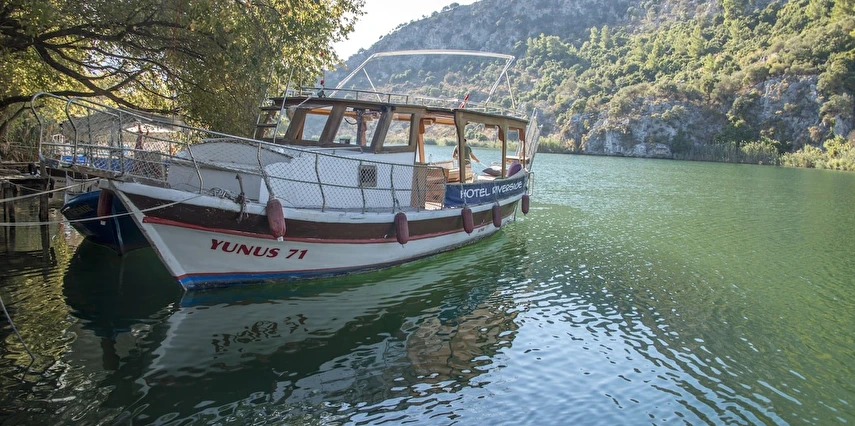 Dalyan nehri kenarındaki Riverside Hotel, İztuzu Plajı ve Köyceğiz Gölü arasında bulunmaktadır. Limandaki kasaba sadece beş dakika yürüyüş mesafesi uzaklığındadır.