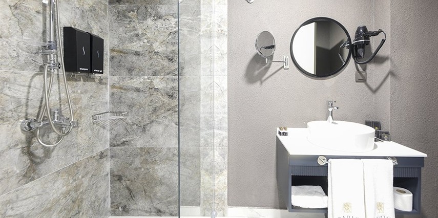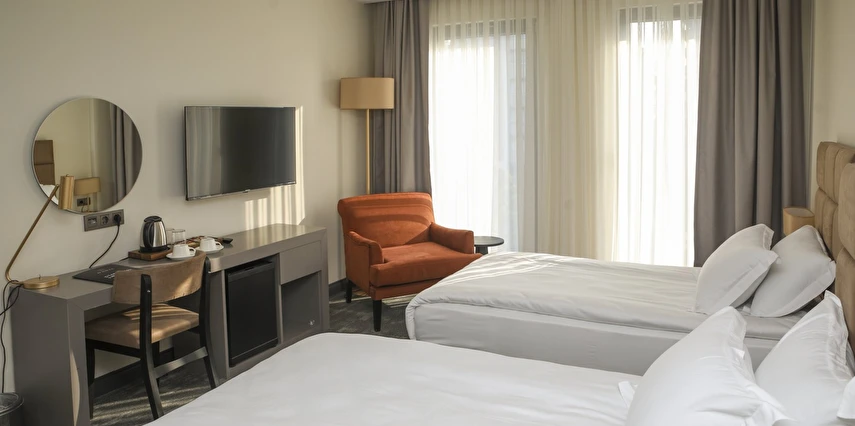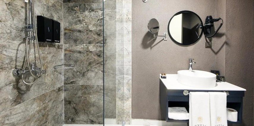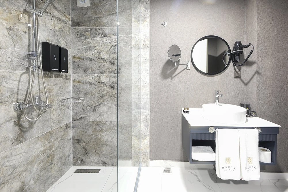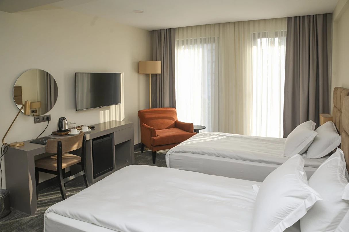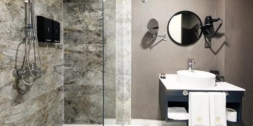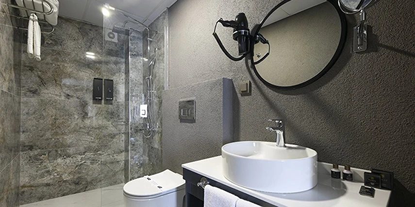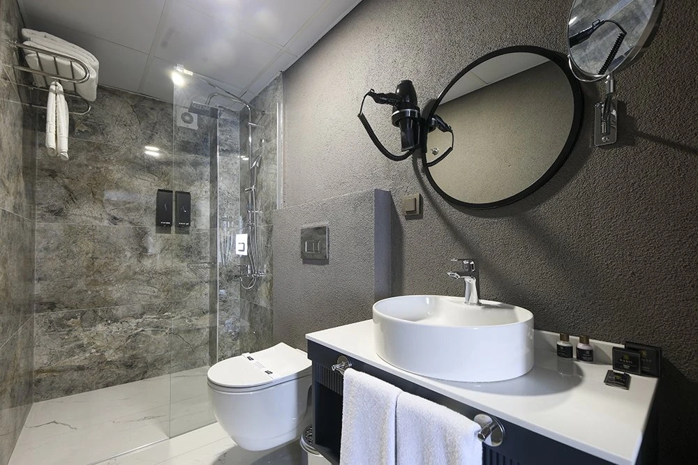 Tüm odalarda VRV klima sistemi, Smart TV, Daric Hotels için özel olarak hazırlanmış olan Atelier Rebul otel hijyen kitleri bulunur.