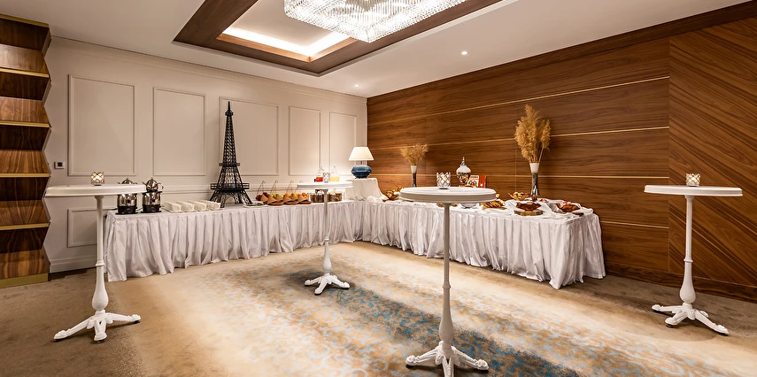 Yarım Pansiyon Plus Konsepti; Kahvaltı ve Akşam yemekleri, yemeklerde alınacak konsept dahilindeki yerli alkollü içecekler ile alkolsüz içecekler, (taze sıkılmış meyve suları hariç ) çay, kahve, su ve coffee break ücretsiz olarak sunulmaktadır. Coffee Break saatinde çay ikram edilmektedir. Tüm outletlerde su ikram edilmektedir.