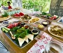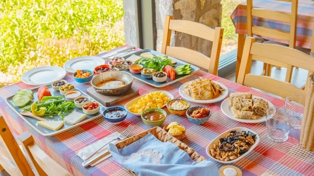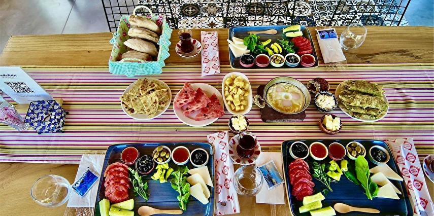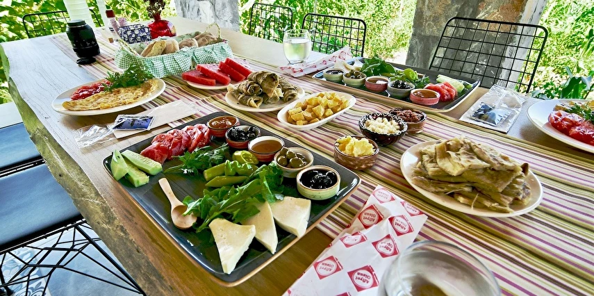 Konsept olarak; Köyümüz ve bahçemizde mevsiminde yetişen taze organik doğal mahsüllerden, taş fırında yemekler, köy ocaklığında ekmekler, geleneksel yöntem, yöresel tatlarla sabah saat 8:00 – 11:00 arası uzun zaman diliminde serpme kahvaltıyla güne başlar. Aşçımızın usta ellerinden her gün yöresel tatları siz misafirlerimize özel, saat 19:00 – 21:00 arası akşam yemeği ikramı ile günü tamamlayacağız. Gerçek köy, doğal, izole, sağlıklı, huzurlu ortamda geçireceğiniz alternatif tatilinizden farklı hikaye, mutlu anılarla dönebilirsiniz..