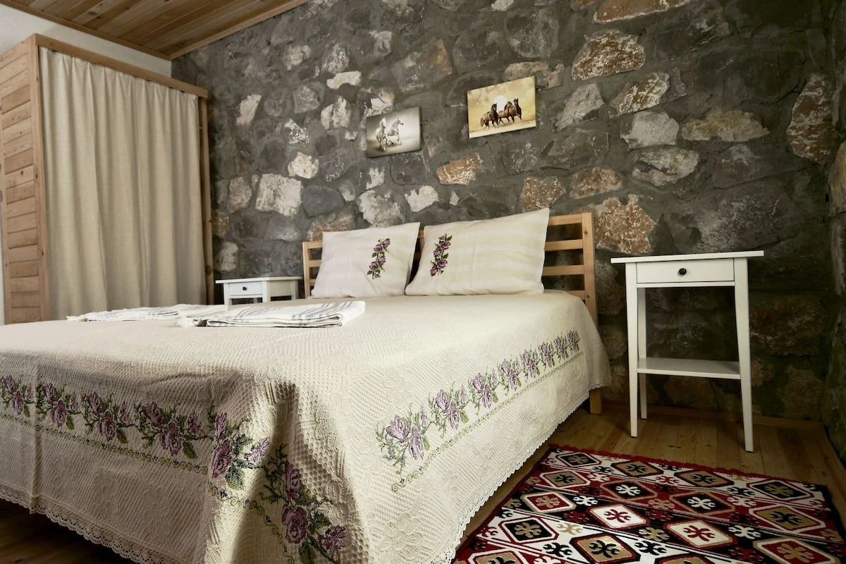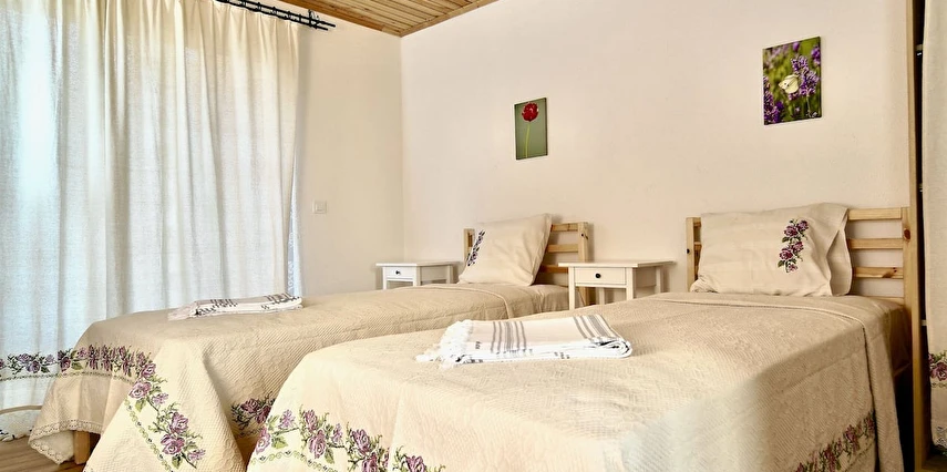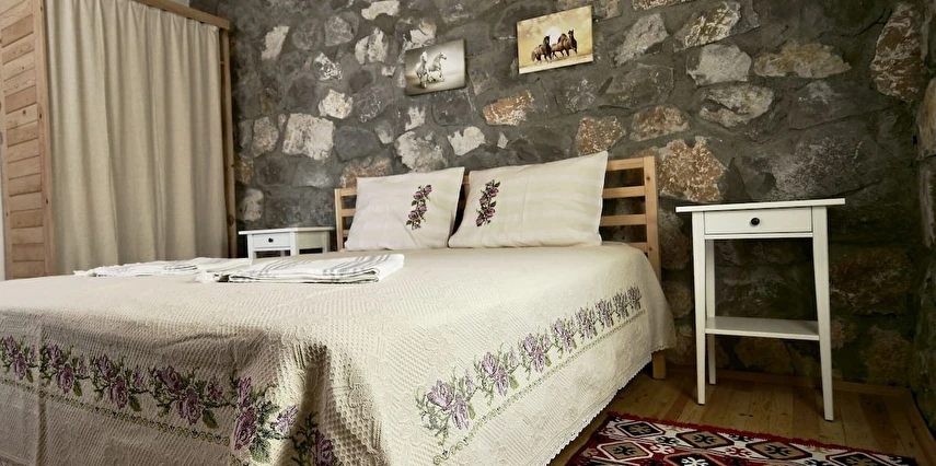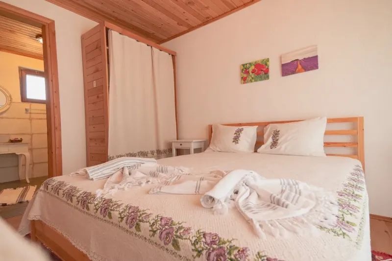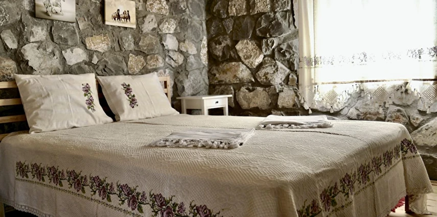 4 Adet Single ve 6 Adet Double Yataklı olmak üzere 10 odamız bulunmaktadır. Odalarımızın duvarları doğal taş, taban, tavan ve duş kapıları mis kokulu ferahlatıcı sedir ağacından yapıldı. Kaliteli banyo ekipmanları, otantik dekoratif oda dizaynı, konforlu yatak ve Buldans tekstil ürünleri ile sade kullanışlı ruhunuzu dinlendiren odalar tasarladık.