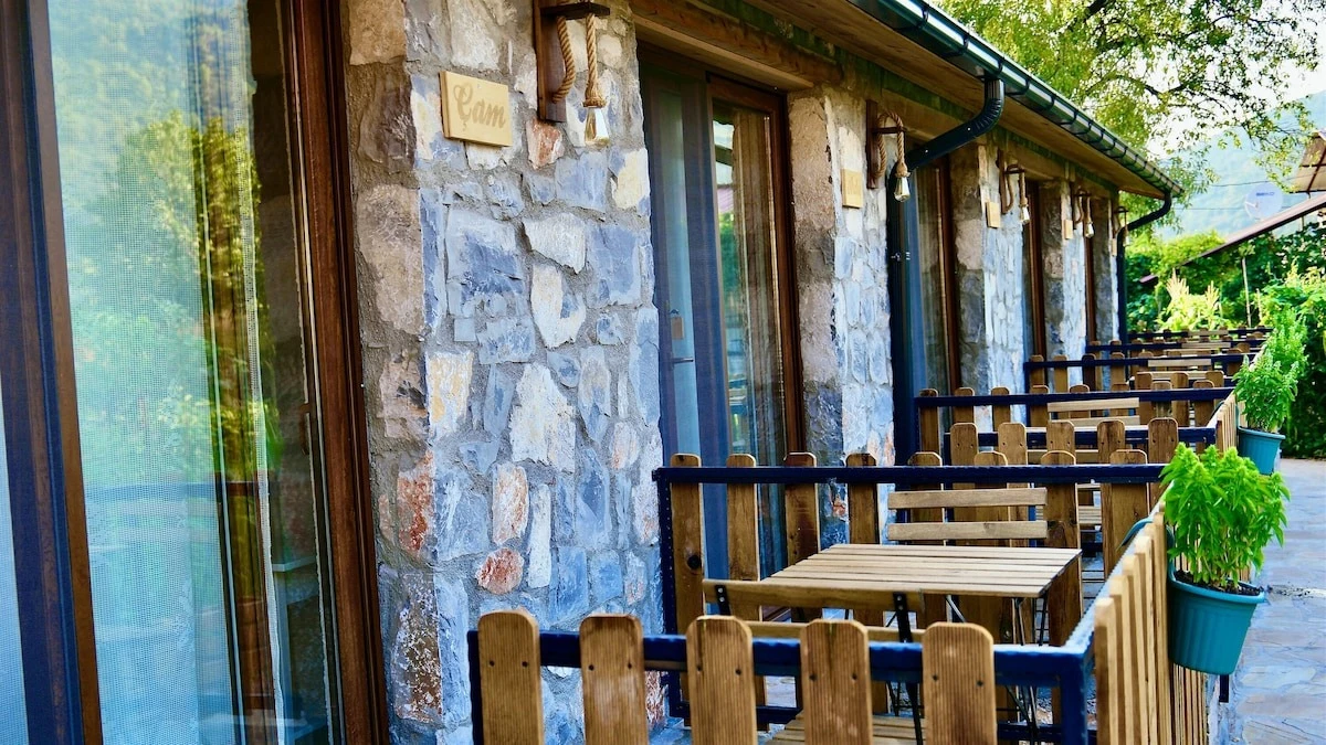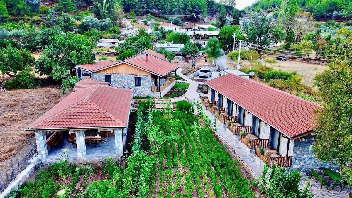Tesisimizi; yörenin taşı ve sedir ağacını harmanlayarak, doğal sedir-çam kokulu, sade, kaliteli ve konforlu, izole ve hijyenik, yöreye münhasır inziva odaları hazırladık.Köyümüzün rakımı 610 m. Oksijeni bol, nemi az, serin ve temiz havası, yerel nimetlerden küresel boyutta faydalanarak günümüzün dünya köyünde yaşamak isteyenleri bekliyoruz. Konuklarımızın içlerinde ki eski zaman özlemlerini, hasretini, gittikleri köy, kaldıkları ev, dokundukları toprak, içlerine çektikleri tertemiz köy havası ile deneyimlemelerini istedik.