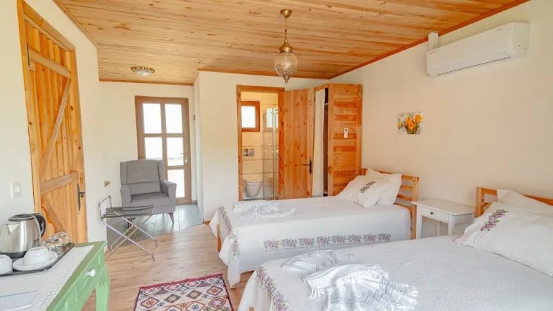 Otelimizde farklı isteklere göre 3 bloktan oluşmaktadır. İsteğe göre 3 adet bağlantılı aile odası ( connection room ) 1 adet 2+1 aile odası olmak üzere 20 kişi kapasiteli 10 odamız mevcuttur. Konuklarımızın içlerinde ki eski zaman özlemlerini, hasretini, gittikleri köy, kaldıkları ev, dokundukları toprak, içlerine çektikleri tertemiz köy havası ile deneyimlemelerini istedik.