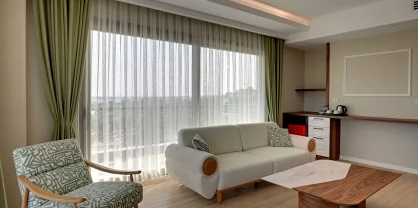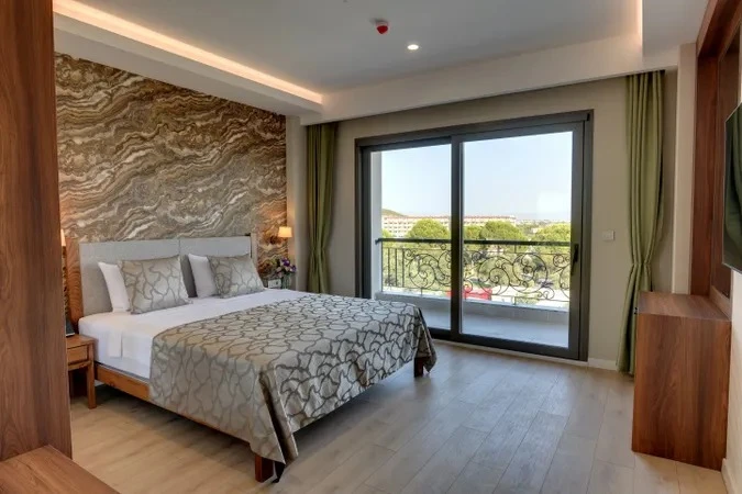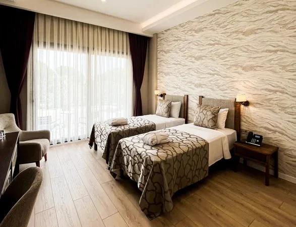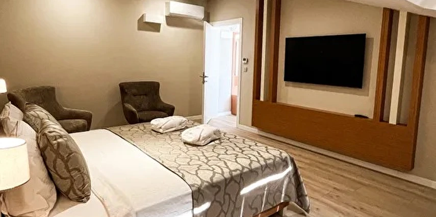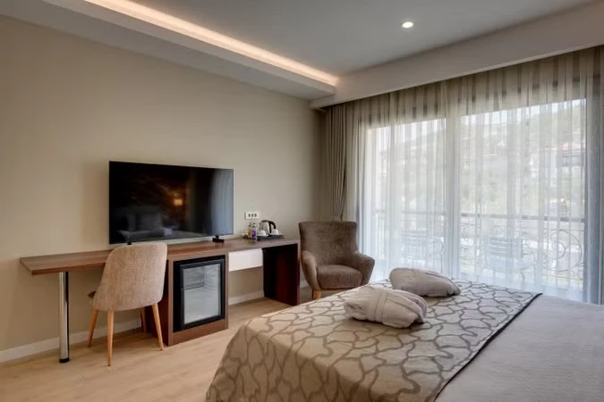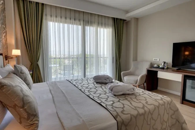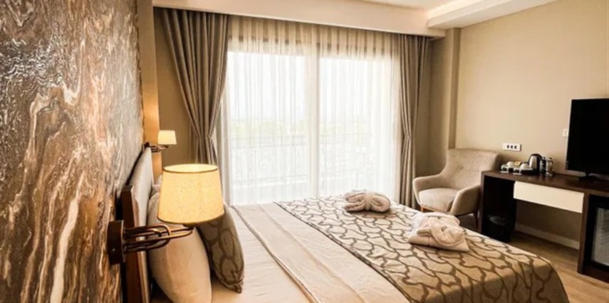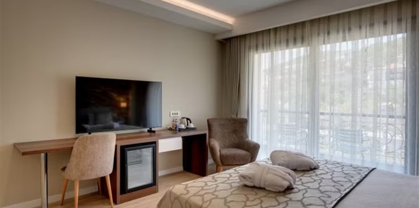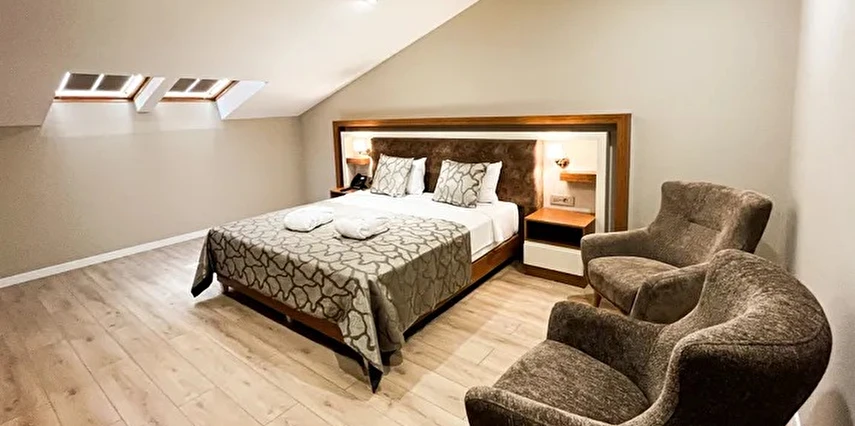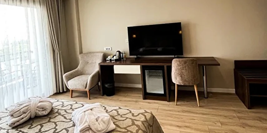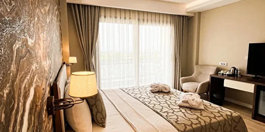 Daha Fazla GösterOtelimiz Balıkesir Edremit Güre Kazdağları eteklerinde bulunan 13,500 metrekare arazi üzerine kurulu olup zeytin ağaçlarının içerisinde kazdağlarının oksijeni ile denizdeki iyot kokusunu birleştiren Dedeman Güre Thermal & Spa 131 oda kapasiteli birbirinden farklı şıklık ve konfor ile dekore edilmiştir . Kazdağları ,Termal ve Deniz'i birarada bulunduran Edremit Körfezi ve Midilli Adası’nın eşsiz manzarasına sahip Mineral zengini şifalı Termal suları ve muhteşem doğasıyla Dünyanın dört bir yanına nam salmış kuzey egenin incisi Gürede sıcak ve özenli hizmet anlayışını sizlere sunmaktadır.