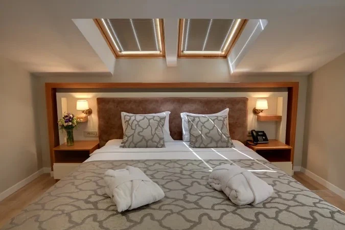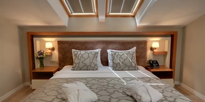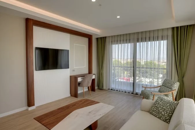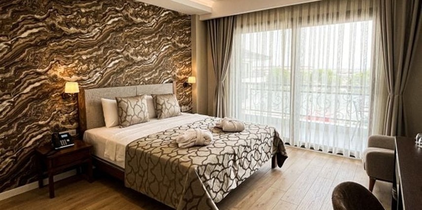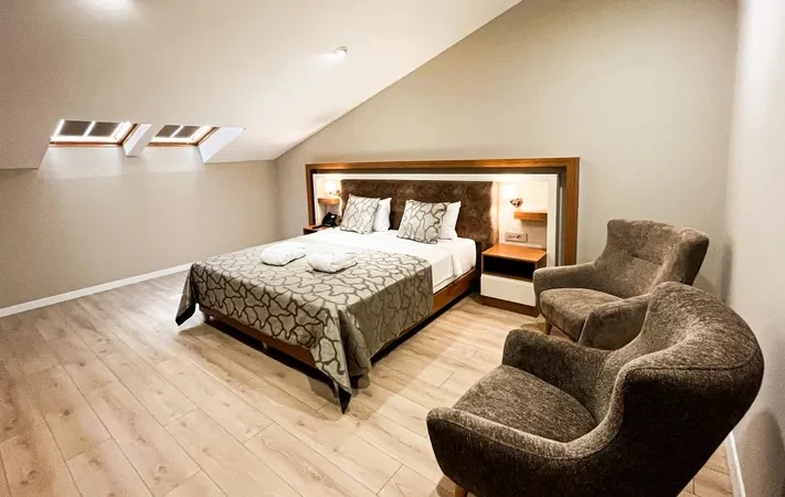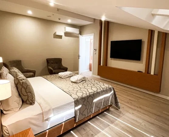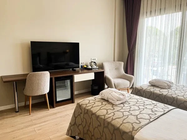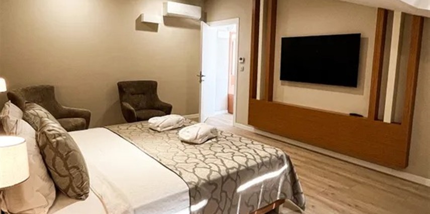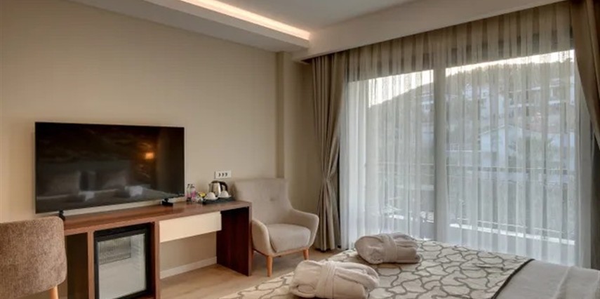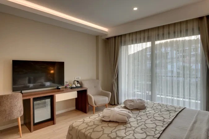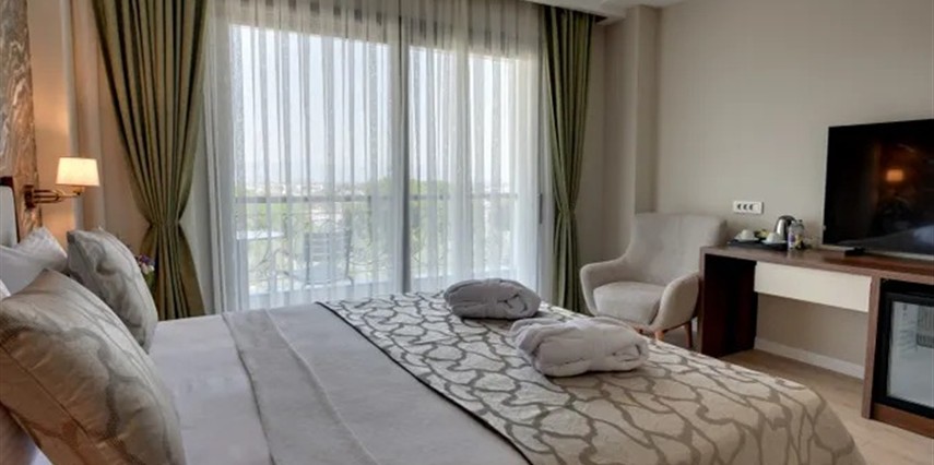 Daha Fazla GösterOtelimiz Balıkesir Edremit Güre Kazdağları eteklerinde bulunan 13,500 metrekare arazi üzerine kurulu olup zeytin ağaçlarının içerisinde kazdağlarının oksijeni ile denizdeki iyot kokusunu birleştiren Dedeman Güre Thermal & Spa 131 oda kapasiteli birbirinden farklı şıklık ve konfor ile dekore edilmiştir . Kazdağları ,Termal ve Deniz'i birarada bulunduran Edremit Körfezi ve Midilli Adası’nın eşsiz manzarasına sahip Mineral zengini şifalı Termal suları ve muhteşem doğasıyla Dünyanın dört bir yanına nam salmış kuzey egenin incisi Gürede sıcak ve özenli hizmet anlayışını sizlere sunmaktadır.
