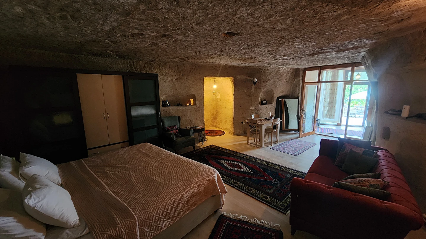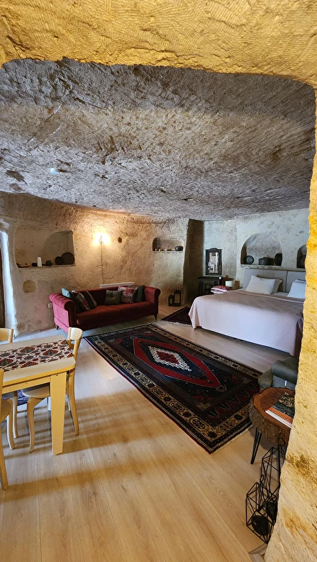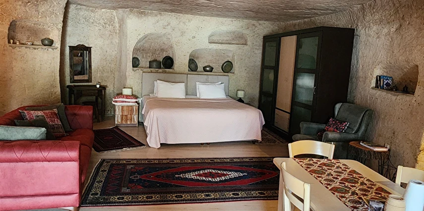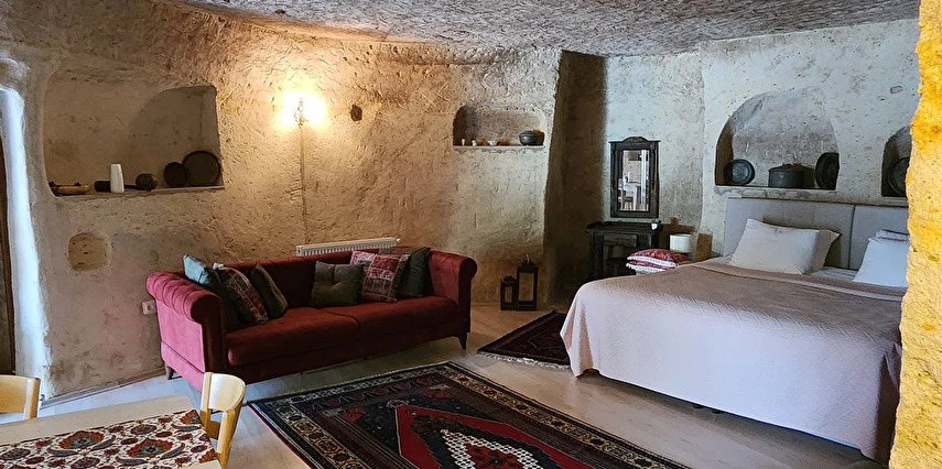 KAPADOKYA BÖLGESİNDE HİZMET VEREN DOĞAL MAĞARA YAPILARINDAN OLUŞAN OTELİMİZDE 6 ADET ODAMIZ BULUNMAKTADIR. SİZLERİ VE SEVDİKLERİNİZİ YERİMİZDE MİSAFİR ETMEKTEN MUTLULUK DUYACAĞIZ