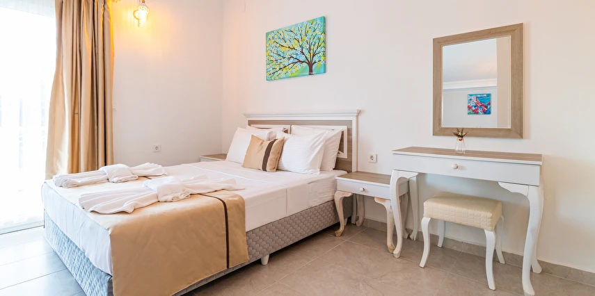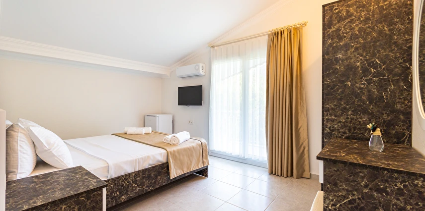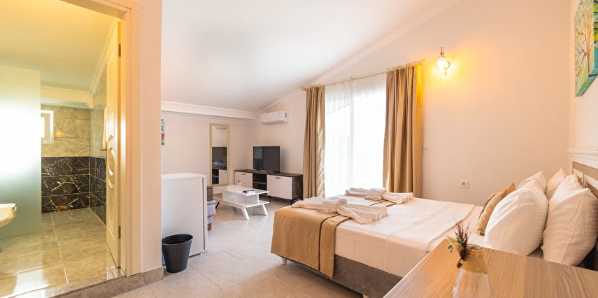 Yeşille mavinin birleştiği eşsiz bir yeryüzü cenneti olan Selimiye köyü'nün girişinde yer alan otelimiz 9 odadan oluşmaktadır. Huzurlu ve sakin bir tatil geçirmek isteyen konuklarımıza oda+kahvaltı konseptiyle hizmet vermekteyiz