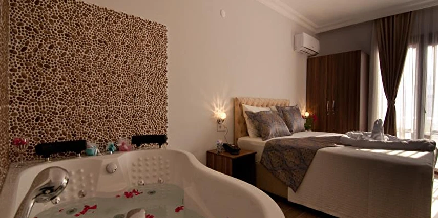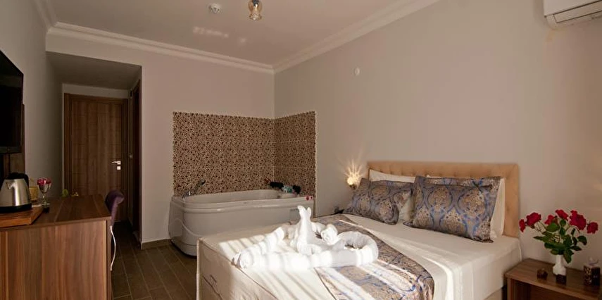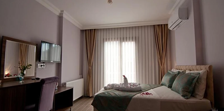 Daha Fazla GösterDefne Otel Ağva, Göksu Nehri’ne ve Ağva Plajı’na yaklaşık 100 m yürüme mesafesinde yer alıyor. Denize yakın avantajlı konumu ile öne çıkan tesis, şehrin karmaşasından uzaklaşmak isteyen misafirlerini mutlu etmeyi başarıyor. Tesiste konaklayan misafirler dilerse Ağva’nın merkezine yürüyerek gidebilir ve orada vakit geçirebilir. Tesisin bahçesinde çocukların eğlenebileceği bir oyun parkı yer alıyor. Şık ve modern şekilde dekore edilmiş odalara sahip olan Defne Otel Ağva, konforlu bir konaklama deneyimi vadediyor. Misafirler şömineli ya da jakuzili odalar arasından seçim yaparak romantik bir hafta sonu tatilinin tadını çıkarabilir. Tesiste 21 oda mevut. Plaja ve merkezdeki çarşıya yürüme mesafesinde yer alan Defne Otel Ağva, misafirlerini Ağva’da ağırlıyor ve Göksu Nehri’ne yakın konumda bulunuyor. Şehrin gürültüsünden uzak bir tatil vadeden tesisin bahçesinde çocuklar için oyun parkı mevcut.