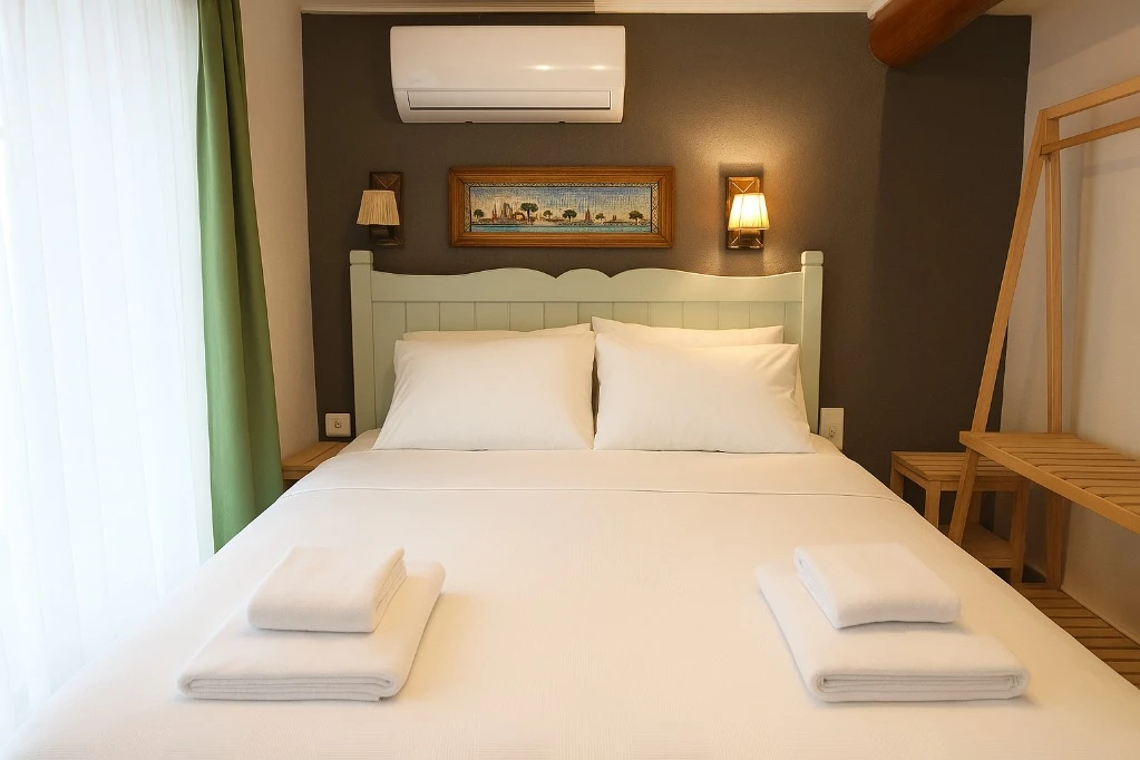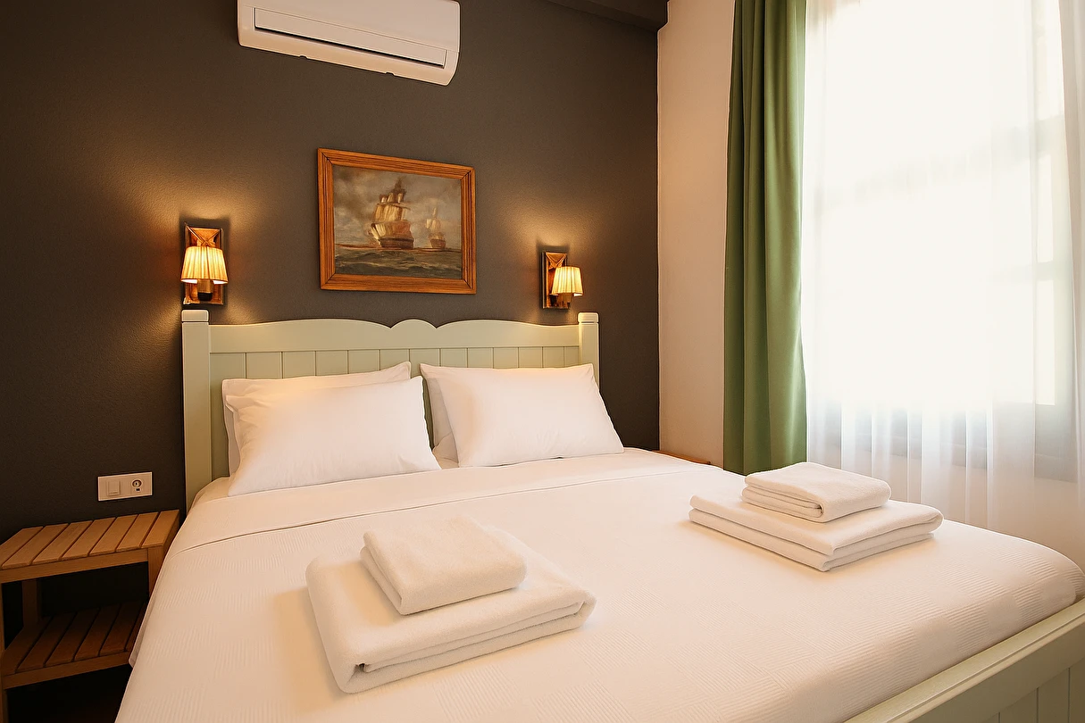 Defne Pansiyon Ayvalık, Ayvalık merkezde konumlanan ve bölgenin tarihi dokusunu yansıtan samimi bir konaklama tesisidir. Şehir içindeki konumu sayesinde restoranlara, kafelere ve alışveriş noktalarına kolay ulaşım imkânı sunar.