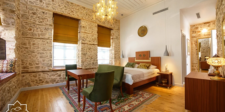 Her biri kendine özgü bir karakterle dekore edilmiş odalarımızda, tarihi doku bozulmadan en modern teknolojik imkanlar konaklamanıza eşlik ediyor
