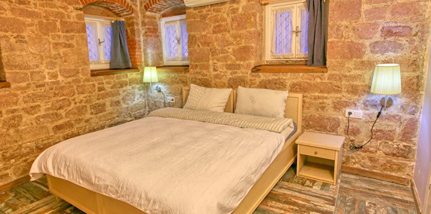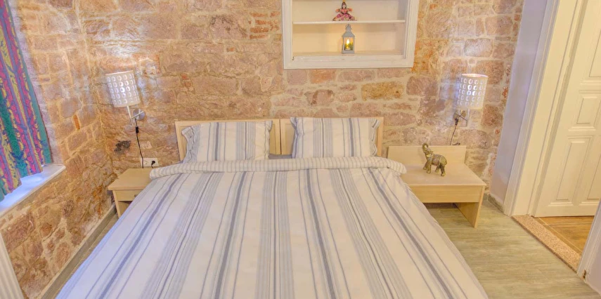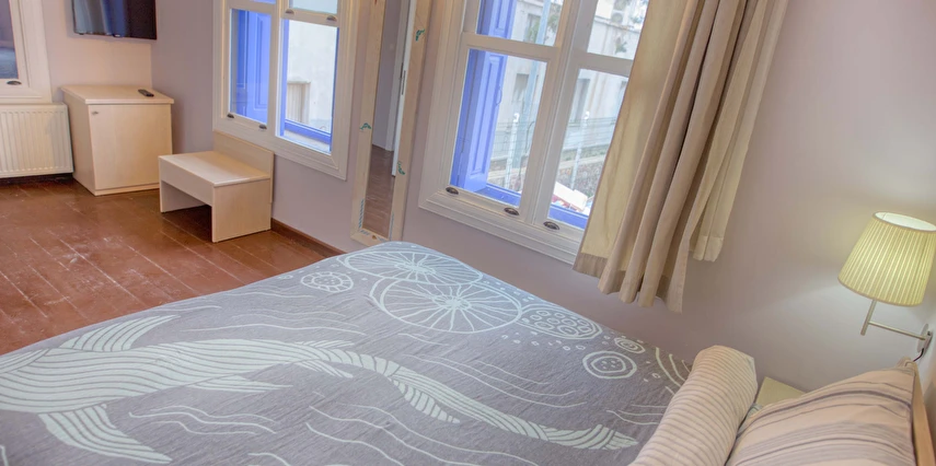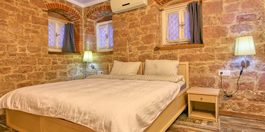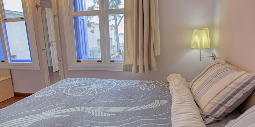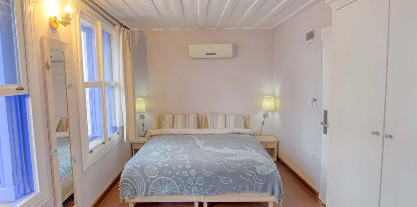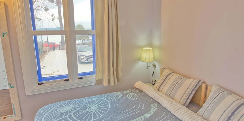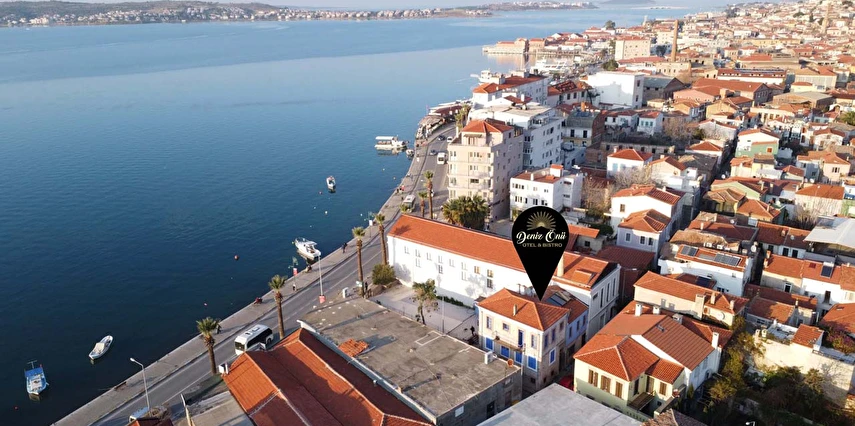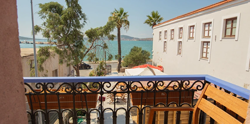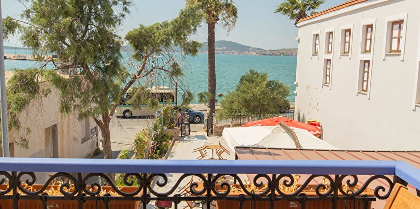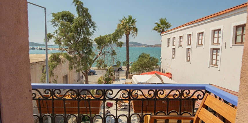 Ayvalık'ın tam merkezinde, deniz kenarı yürüyüş kordonunda, market, restoran, müze ve tarihi gezilebilecek yerlere yürüme mesafesindedir.