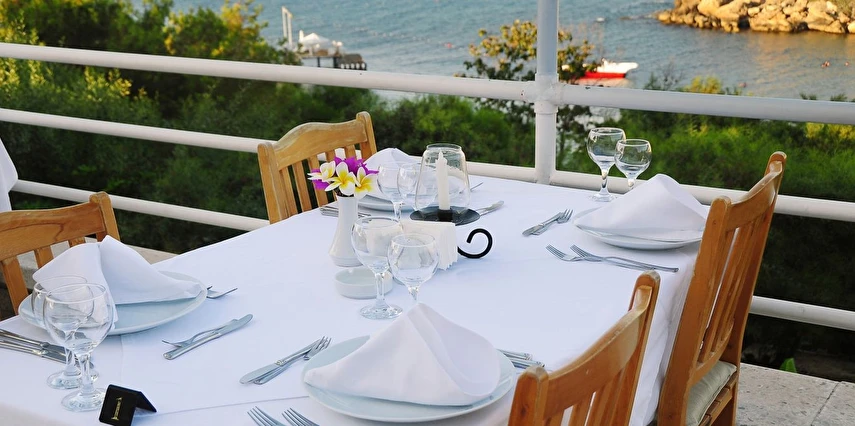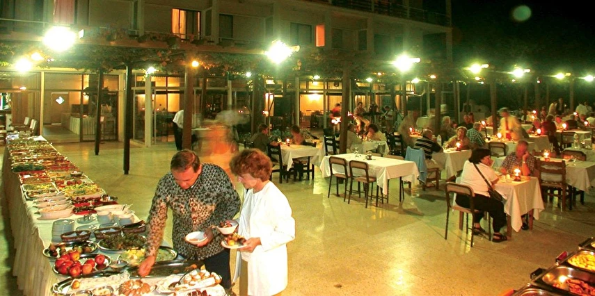 Sabah kahvaltısı ve akşam yemeği özel günler hariç a'lacarte olarak verilmektedir.Özel günlerde açık büfe servis edilmektedir.