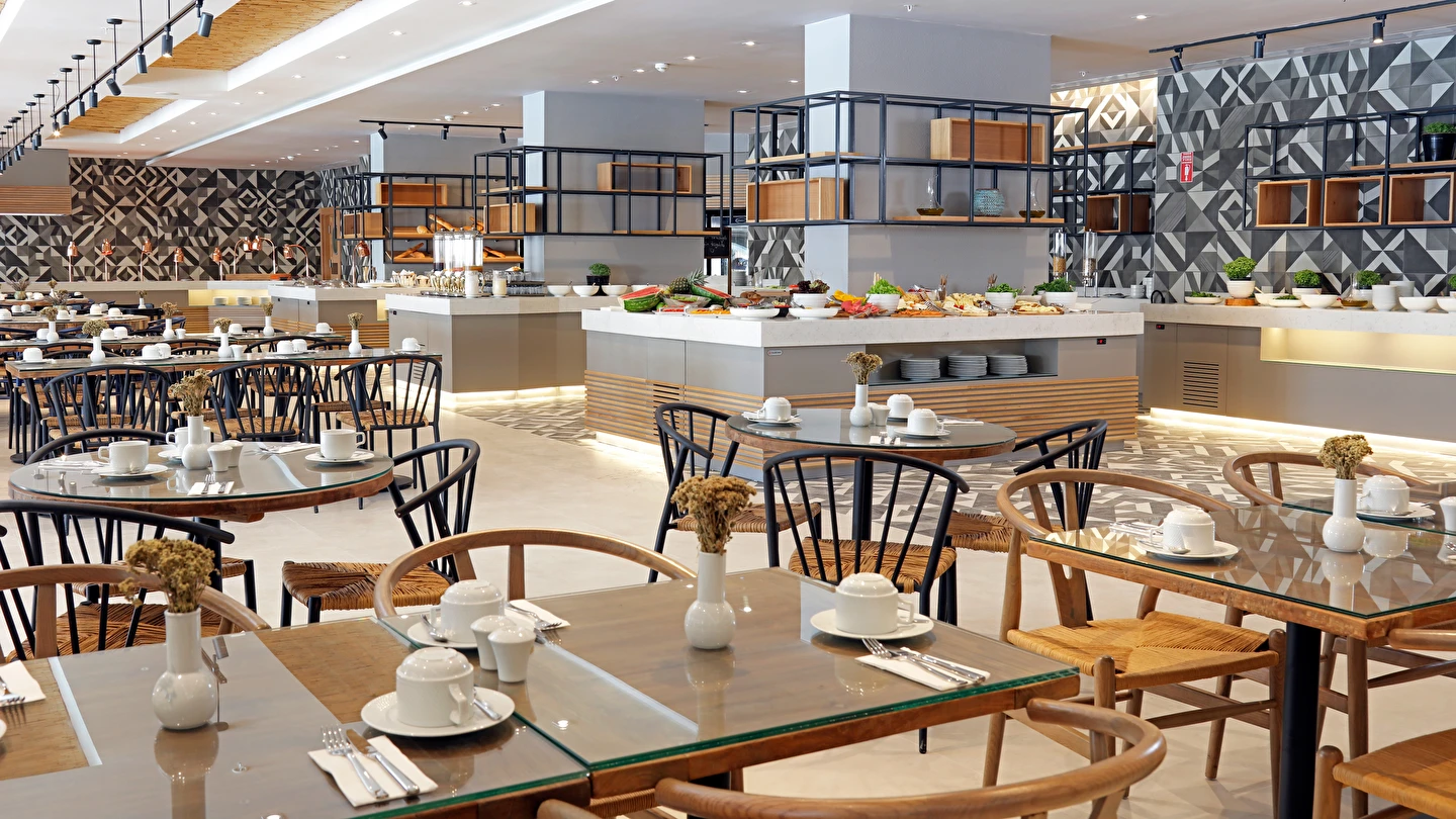Sabah kahvaltısı, öğle ve akşam yemekleri açık büfe olup tesisin belirlemiş olduğu markalar dahilinde 07:00 ile 23:00 saatleri arasında ücretsizdir. 23:00 sonrasındaki içecek siparişleri, konsept dışı içecekler ve yemek siparişleriniz ekstra olarak ücretlendirilir.