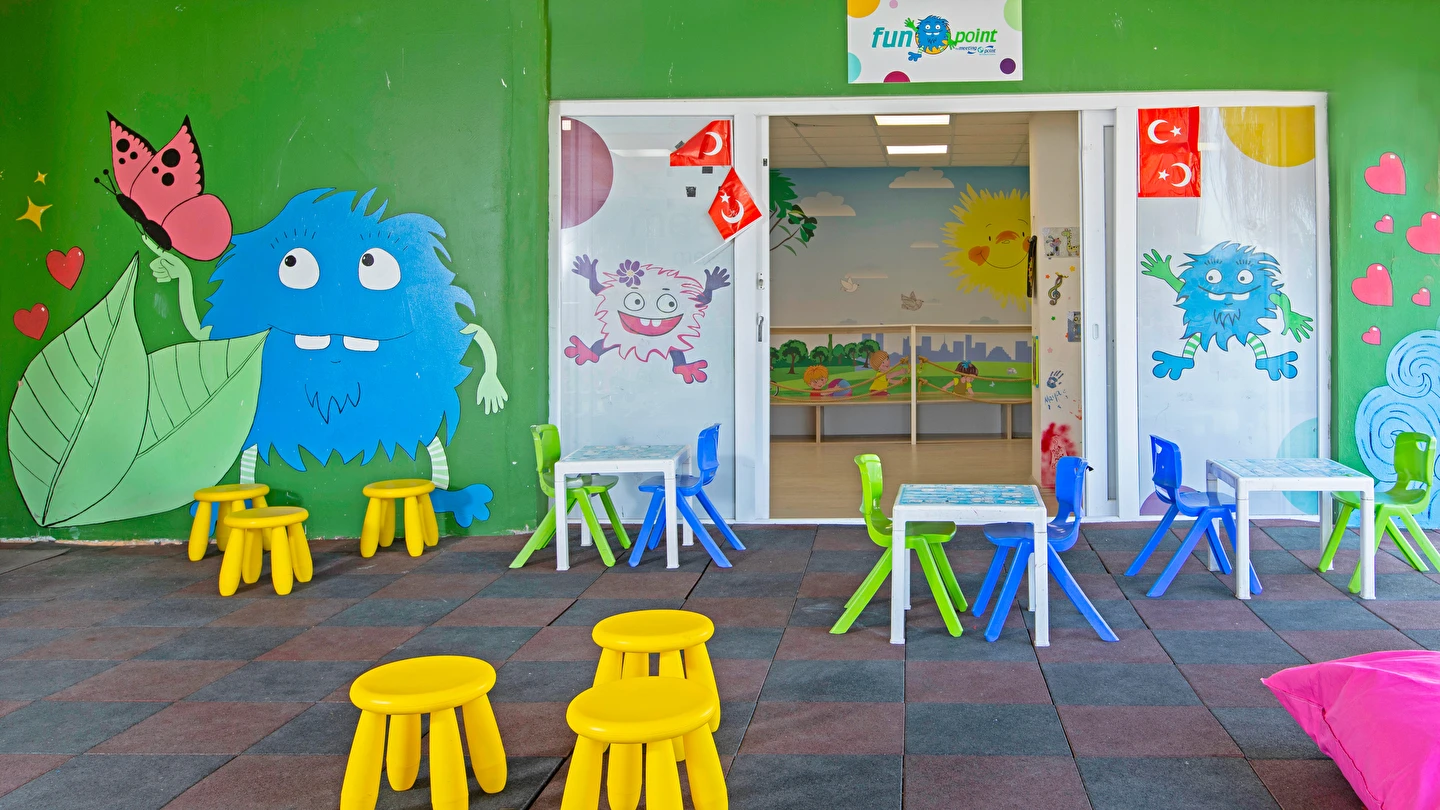 Mini Club 4 - 12 yaş çocuk misafirlere 10:00 - 12:00 / 14:30 - 17:00 / 20:00 - 21:30 saatleri arasında hizmet verir. (Pazartesi günü hariç) 4 yaş altı çocuk misafirler ebeveyn kontrolünde katılım sağlayabilir.