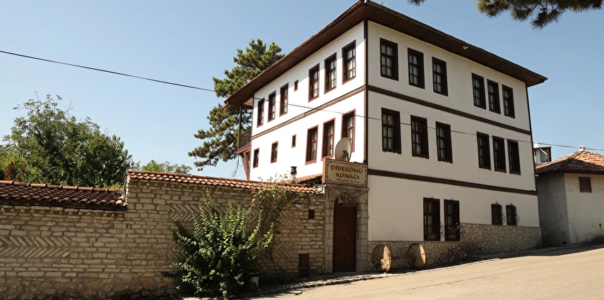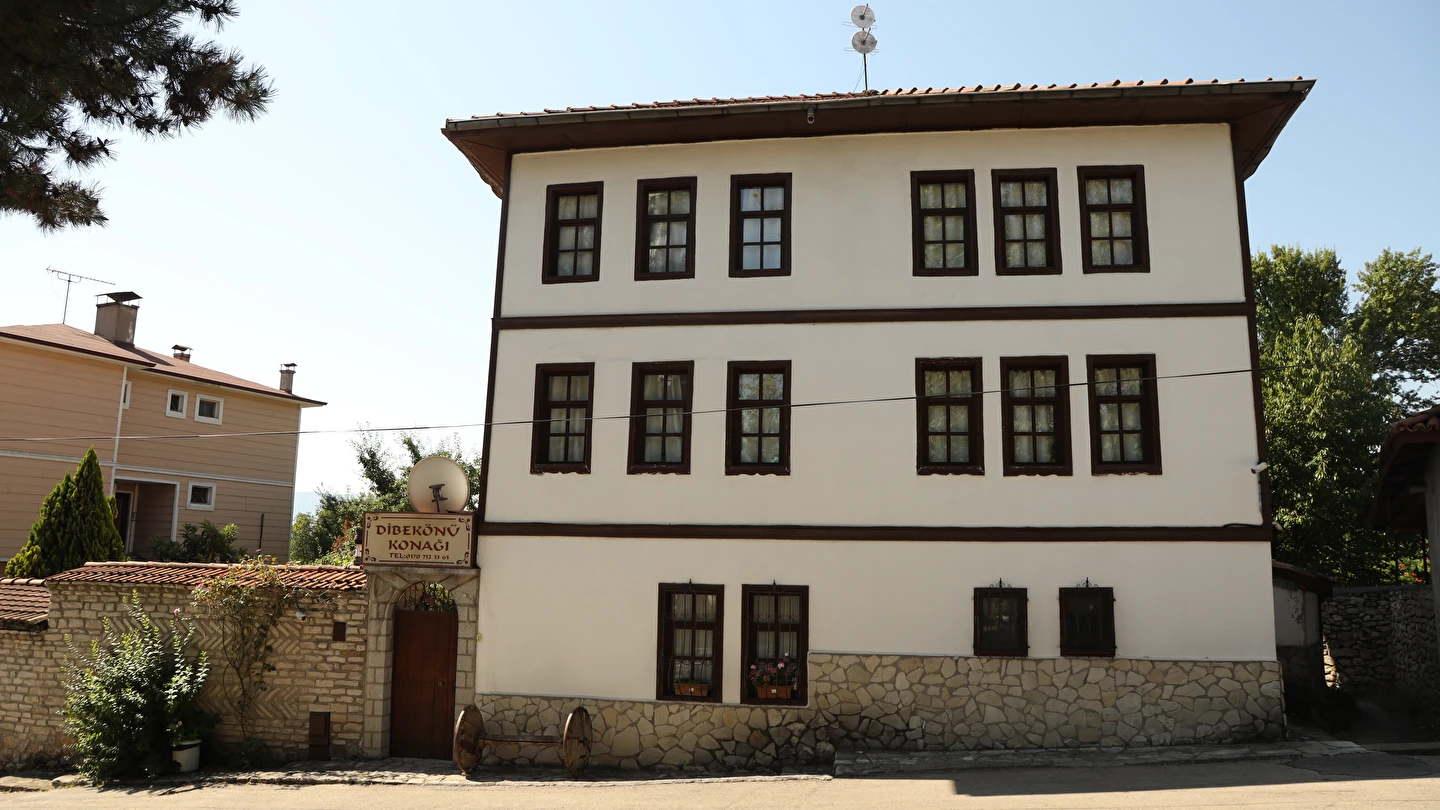 Daha Fazla GösterSafranbolu'nun bağlar mevkiisinde yer alan tarihi konağımız 600 m2 bahçe'ye sahip,3 katlı eşsiz bir yapıdır. Konağımız siz değerli misafirlerimize, tarihi dokusu doğayla birleşen, şehrin gürültüsünden uzak, sabahları doğanın doğal sesleri ile uyanabileceğiniz bir ortam sunmaktadır. Sizleri Safranbolumuzda Dibekönü Konak'ta ağırlamaktan mutluluk duyacağız. 'Dibekönü Konak'ta kalmak bir ayrıcalıktır.'