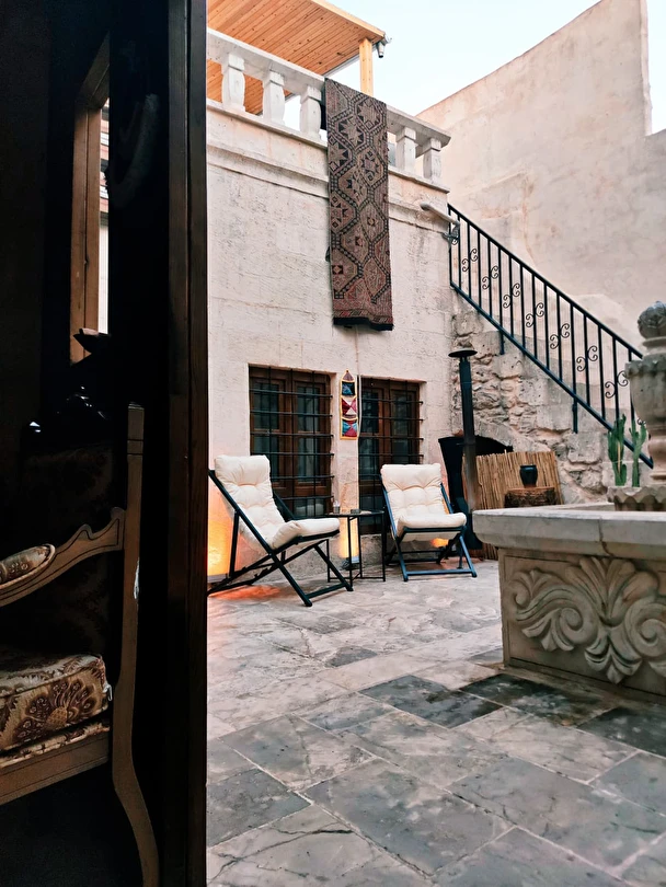 Taş duvarları, kubbeli tavanları ve nostaljik detaylarıyla öne çıkan otelimiz, Balıklıgöl’e yalnızca 5 dakikalık yürüme mesafesindedir. Geniş bahçemiz, otantik café alanımız ve dinlenme köşelerimizle misafirlerimize huzurlu bir ortam sağlıyoruz.