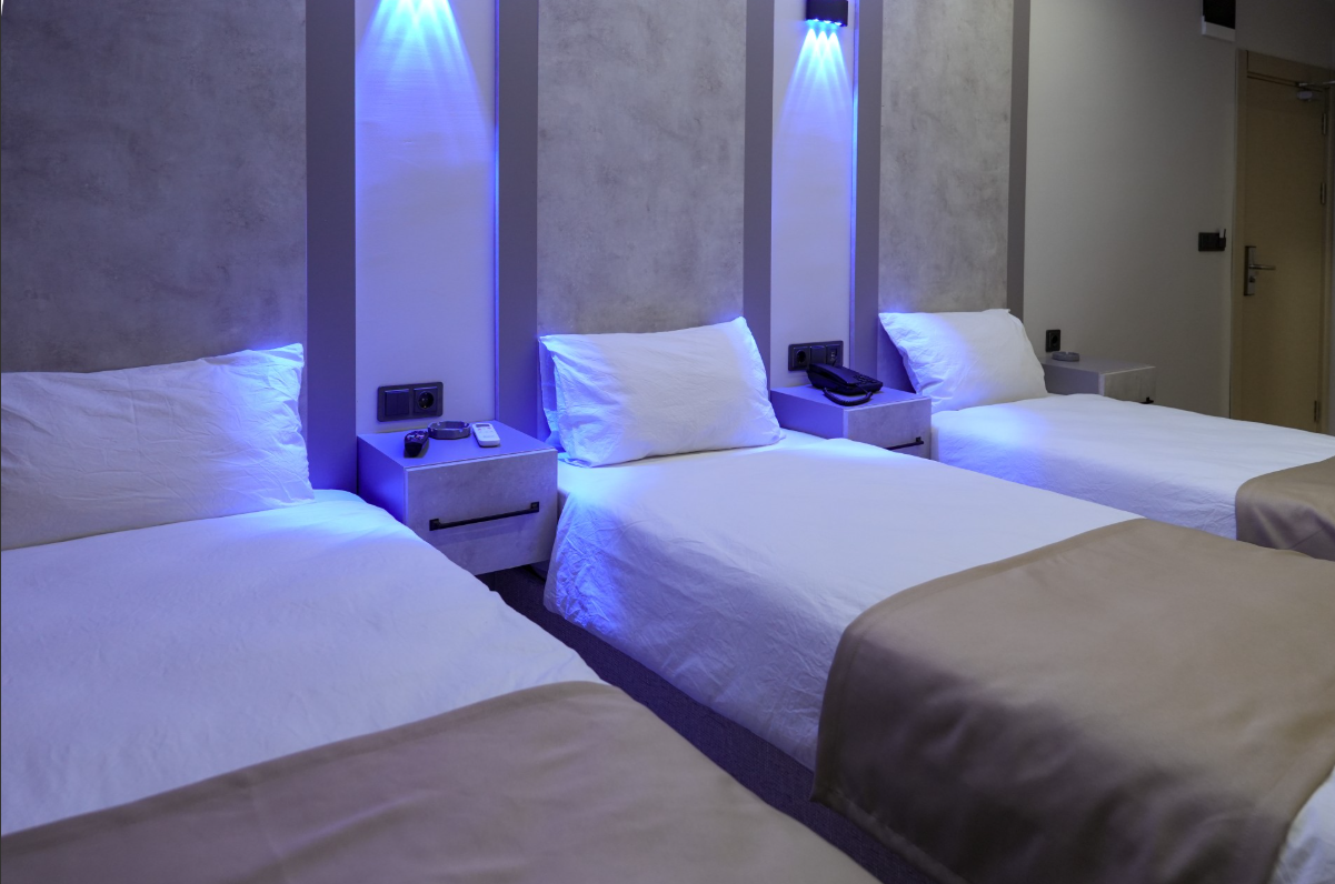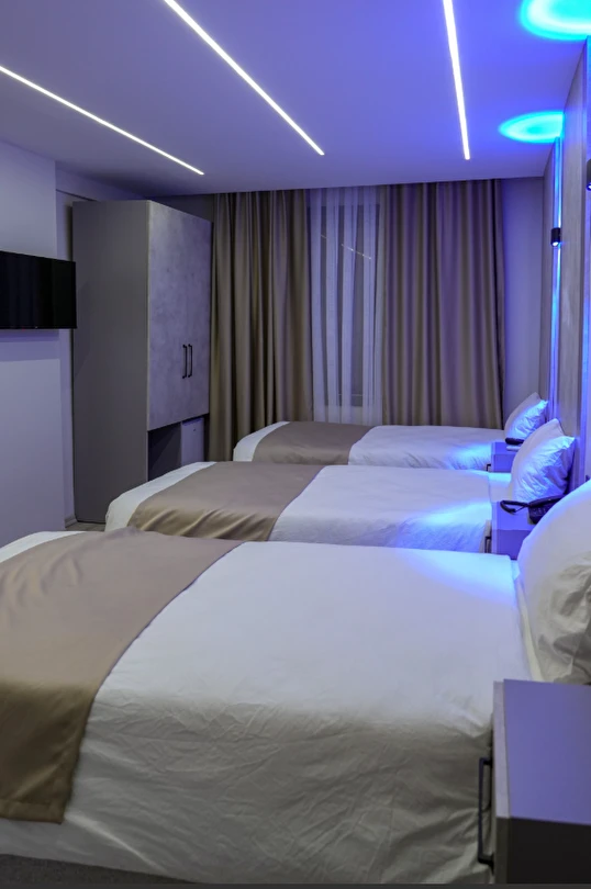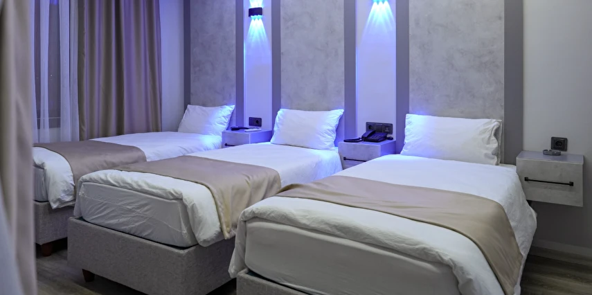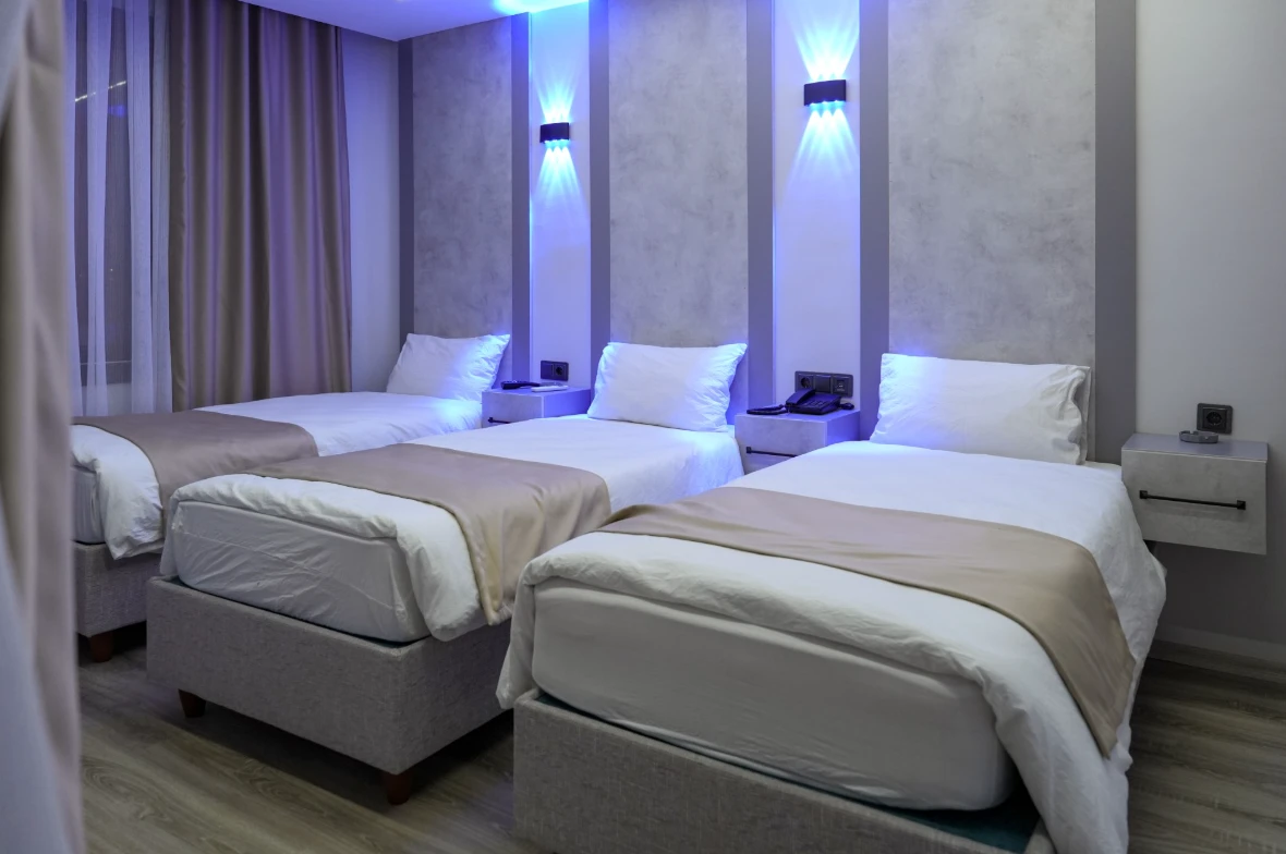 Üç Ayrı Yataklı Standart Oda, 30 m² genişliği ve 3 yetişkin kapasitesi ile özellikle arkadaş grupları ve birlikte seyahat eden misafirler için ideal bir alternatiftir. Geniş yaşam alanı ve ayrı yatak düzeni ile konforlu bir konaklama sunar.