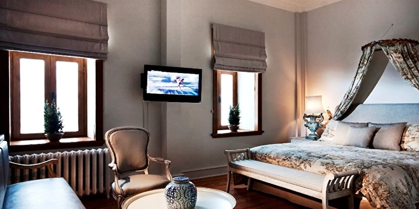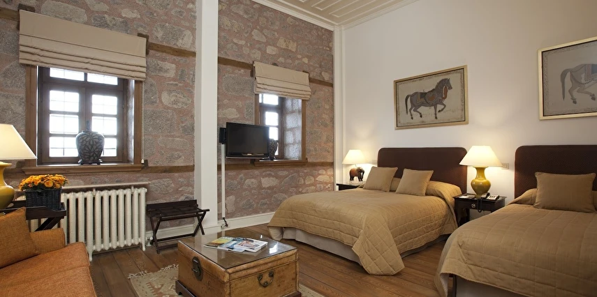 Tarihi mimarinin zarif detaylarıyla tasarlanmış odalar, modern konfor unsurlarıyla donatılmıştır.