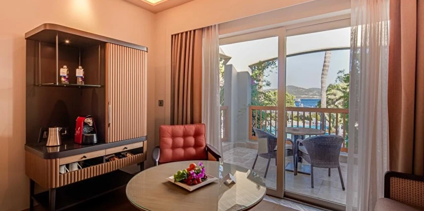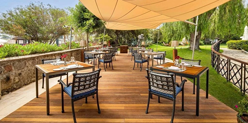 Denize sıfır konumda bulunan Divan Bodrum’un kendine ait özel plajı ve iskelesinde güneşin ve denizin keyfini çıkarabilirsin. Şık ve konforlu odalarına ihtiyaç duyabileceğin pek çok olanağın bulunduğu tesiste, şehrin ve iş hayatının verdiği stresi üstünden atabileceğin sauna ve rahatlatıcı SPA olanakları yer alıyor. Tatilde de zinde kalmak isteyen misafirler için tam donanımlı fitness merkezi hizmet veriyor. Tesiste, usta şeflerin seçkin menülerini tadabileceğin İskele Restoran ve geniş içecek seçeneklerini deneyebileceğin lobi barda keyifli vakit geçirebilirsin. Divan Bodrum; Turgutreis Otogarı’na 30 km, Milas Bodrum Havalimanı’na ise 46 km mesafede konumlanıyor. Denize sıfır konumda bulunan Divan Bodrum’un kendine ait özel plajı ve iskelesinde güneşin ve denizin keyfini çıkarabilirsiniz. Şık ve konforlu odalarına ihtiyaç duyabileceğiniz pek çok olanağın bulunduğu tesiste, şehrin ve iş hayatının verdiği stresi üstünüzden atabileceğiniz sauna ve rahatlatıcı SPA olanakları yer alıyor. Tatilde de zinde kalmak isteyen misafirler için tam donanımlı fitness merkezi hizmet veriyor. Usta şeflerin seçkin menülerini tadabileceğiniz İskele Restoran ve geniş içecek seçeneklerini deneyebileceğiniz lobi barda keyifli vakit geçirebilirsiniz. Divan Bodrum Turgutreis Otogarı’na 30 km, Milas Bodrum Havalimanı’na ise 46 km mesafede konumlanıyor. Tesis evcil hayvan kabul ediyor. 10 kg’ın altında bir evcil hayvan, 25 € konaklama bedeli karşılığında tüm oda tiplerinde konaklayabilir. Ayrıca her evcil hayvan için konaklama boyunca oluşabilecek hasar durumlarına karşı tesis tarafından 150 € depozito alınıyor. Konaklama sonrası herhangi bir hasar tespit edilmediği durumda depozito misafire iade ediliyor. Evcil dostuyla konaklayacak misafirlerin, tesise giriş işlemleri sırasında yetkililere evcil dostunun aşı kartını ve pasaportunu ibraz etmesi gerekiyor. Kalite ve lüksü birleştiren Divan Grubu’nun, eşsiz doğasıyla dikkat çeken Türkbükü’nde hizmet veren tesisi Divan Bodrum, kusursuz hizmet anlayışı ve modern tasarımıyla misafirlerine beklentilerinin ötesinde bir tatil sunuyor.