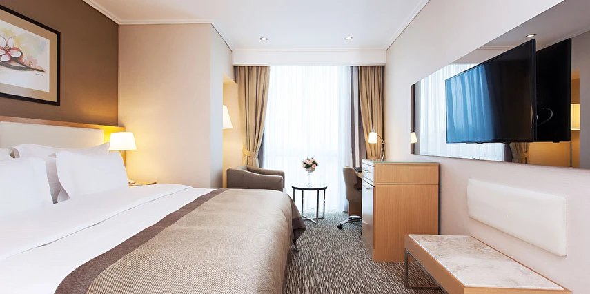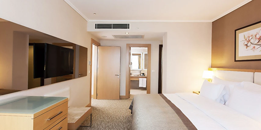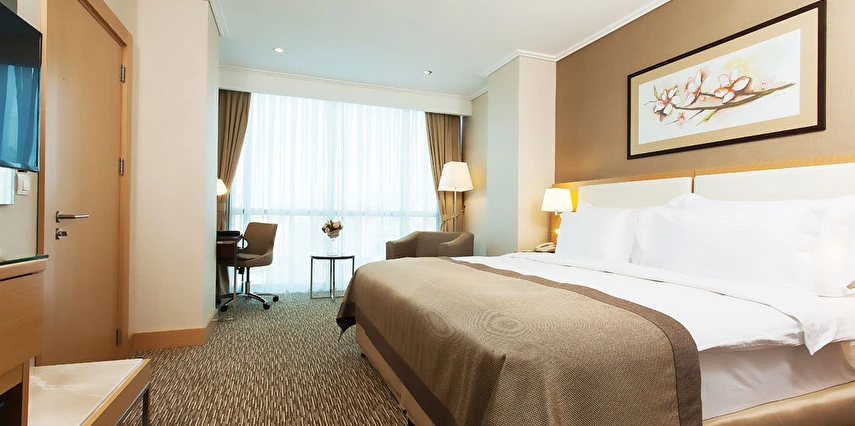 Gün ışığı alan ferah salonlar, teknik altyapı ve profesyonel servis desteğiyle birleşerek organizasyonların verimli ve sorunsuz şekilde gerçekleşmesine olanak tanır. Toplantı sonrası spa, fitness ve restoran alanlarının kullanımı ise iş seyahatini konforlu bir deneyime dönüştürür.