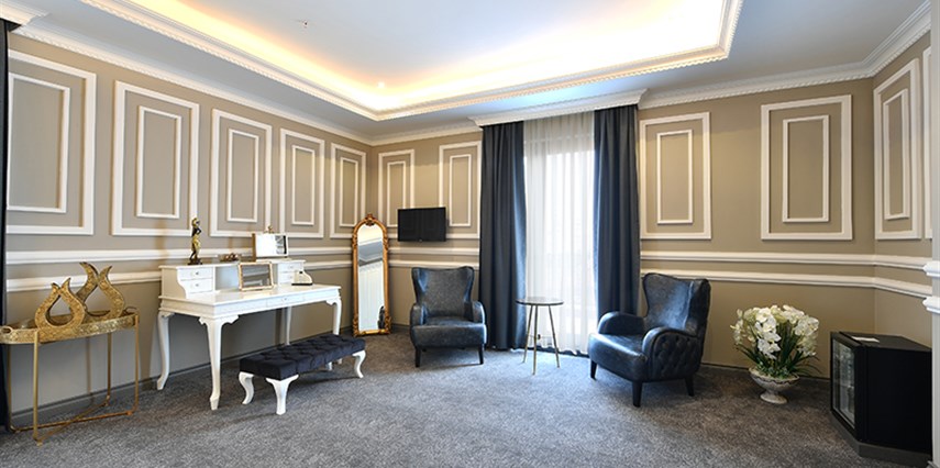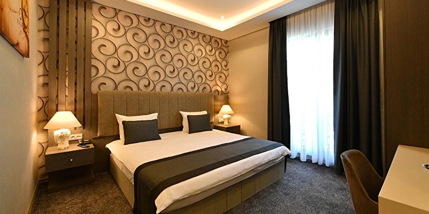 Daha Fazla GösterMisafirlerini konforlu ve şık odalarında ağırlayan D’lux Boutique Hotel, şehir merkezine yakın konumda olup alışveriş merkezleri ve eğlence yerlerine yaklaşık 15 dakika mesafede bulunuyor. Havalimanı, otogar ve tren gibi ulaşım ağlarına kolayca erişilebilecek bir konumda yer alan tesis, keyifli bir konaklama alternatifi sunuyor.