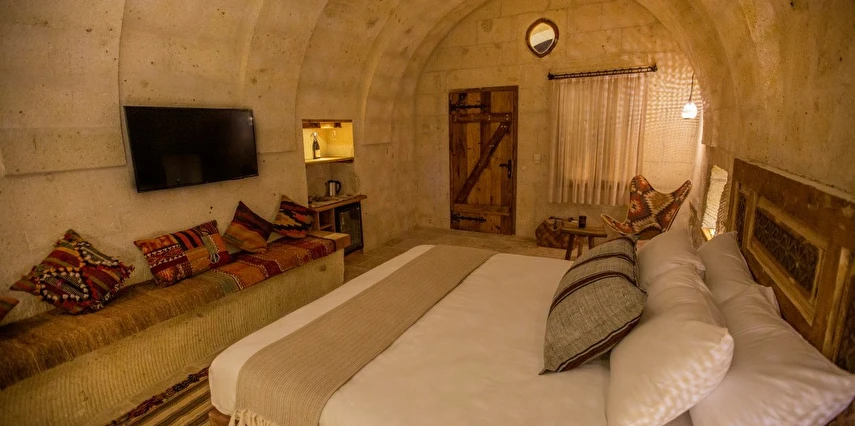 Kapadokya'nın tam kalbinde, doğa harikası coğrafyada tarihi ve sanatı bir arada sunan mağara ve taş odalarda kalmanın cazibesini keşfetmeye hazır mısınız? Ortahisar Kalesi ve sıcak hava balonlarını en güzel açıdan görebileceğiniz bir terasa sahip olan Doda, Kapadokya'nın tarihi ve kültürel dokusunu Danimarka mutluluk sanatı Hygge ve Japon Wabi - Sabi yaşam tarzıyla harmanlıyor.