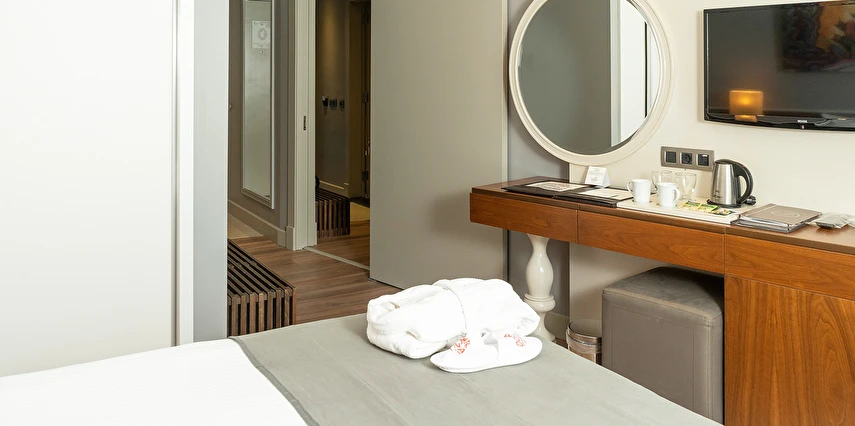 Konaklama boyunca çay, kahve, bitki çayları ve su ücretsiz servis edilir.