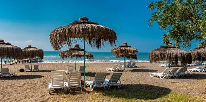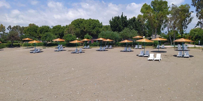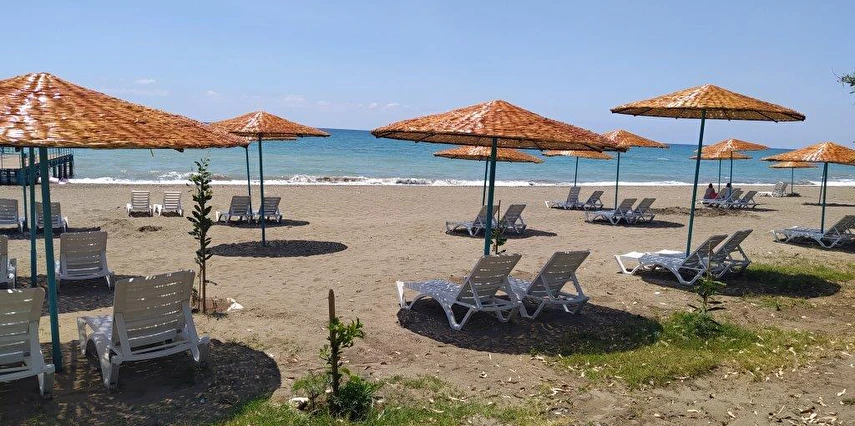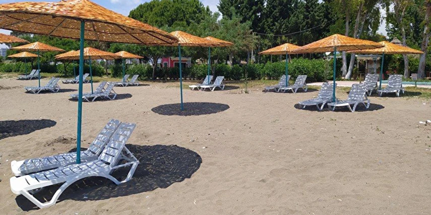 Plajda şezlong, güneş şemsiyesi, plaj havlusu ücretsiz olarak temin edilebilir.