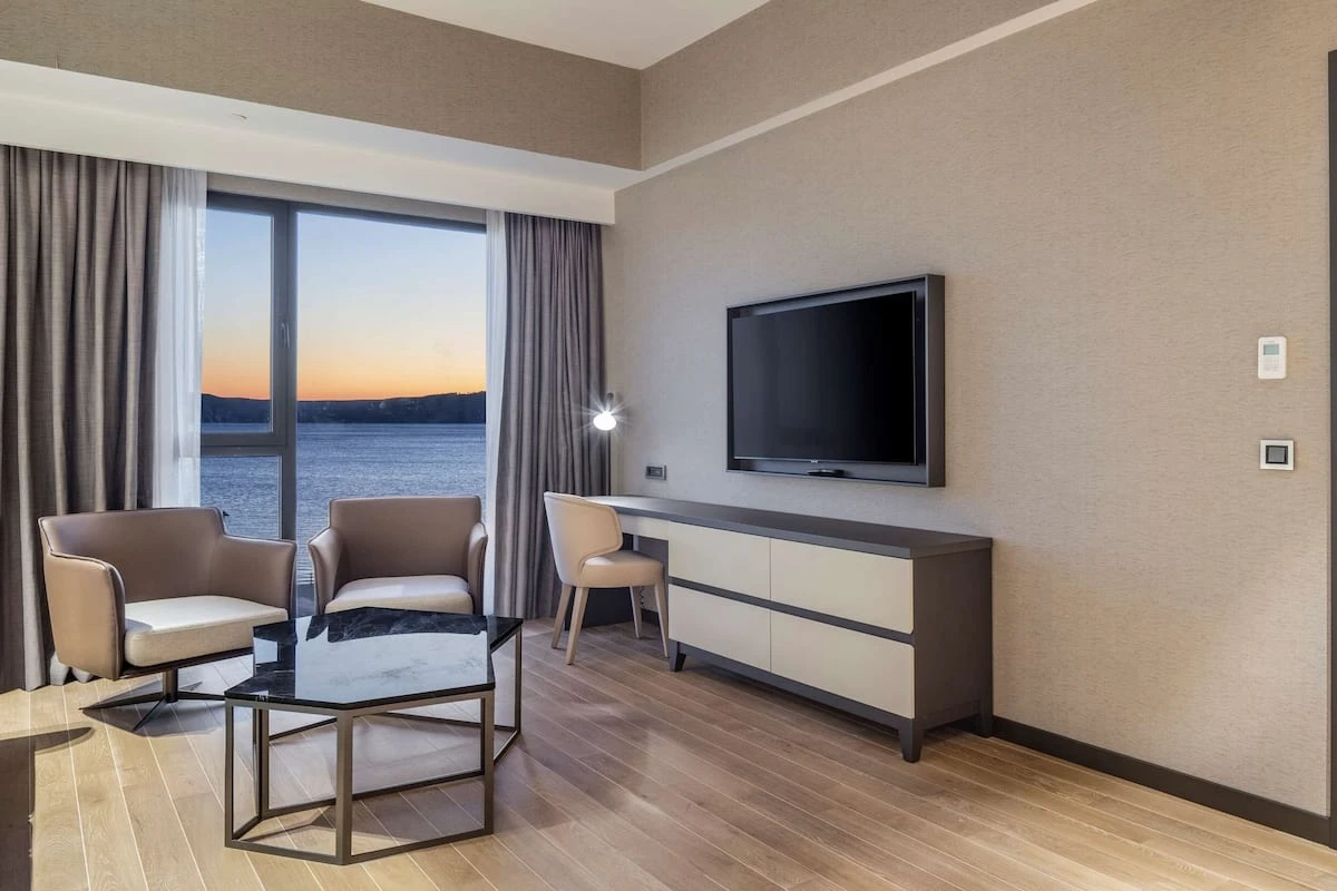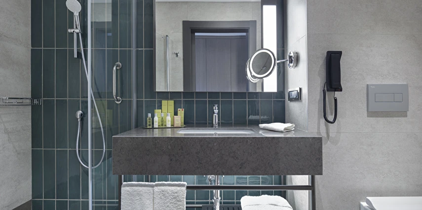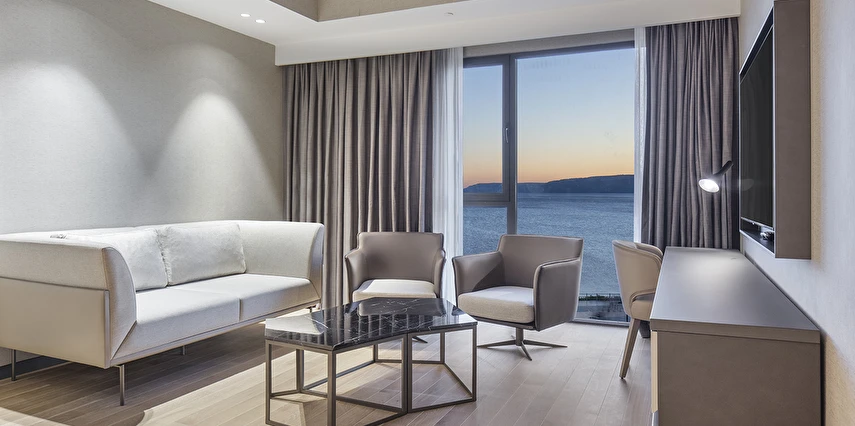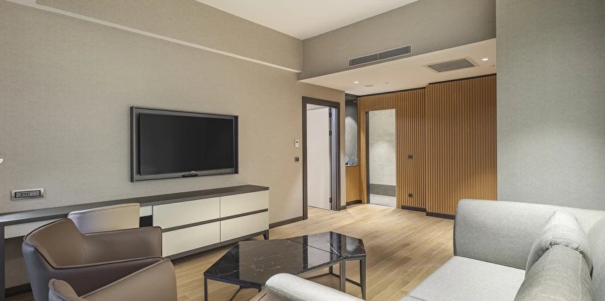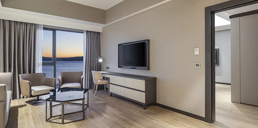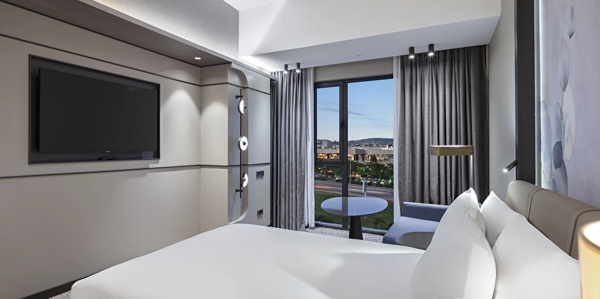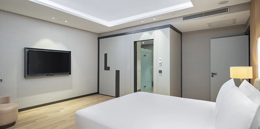 Tesiste toplam 155 oda mevcut olup, odalarda; dijital kasa, kablolu ve kablosuz internet, minibar, telefon, makyaj aynası, merkezi klima, uydu TV, çalışma masası, ütü, ütü masası, çay-kahve seti ve saç kurutma makinesi bulunuyor.