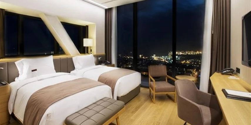 Daha Fazla GösterAvrupa'nın en yüksek çelik binası ünvanına sahip DoubleTree by Hilton Avcılar, sunduğu konfor ve bulunduğu konum itibari ile hem iş, hem de gezi amaçlı konaklamalar için tercih edilebilecek bir alternatifi sunuyor. Tesiste toplam 231 oda mevcut. Odalarda; dijital kasa, kablolu ve kablosuz internet, minibar, pay TV, telefon, duman dedektörü, LCD TV, makyaj aynası, merkezi klima, uydu TV, çalışma masası, ütü, ütü masası, çay-kahve seti ve saç kurutma makinesi bulunuyor.