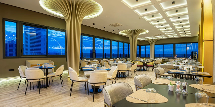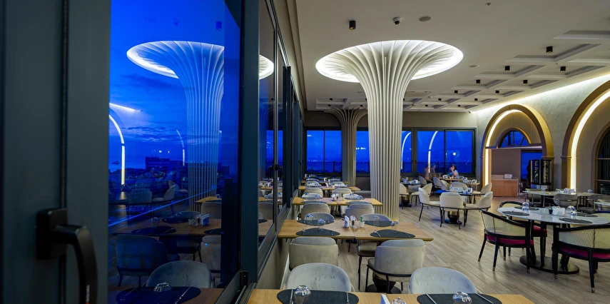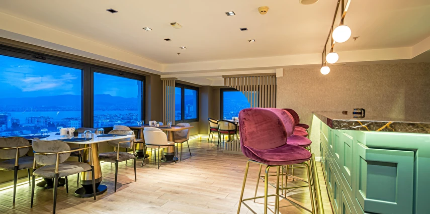 İsteğe bağlı oda servisi ile Türk, Akdeniz ve uluslararası yemek seçenekleri için Smyrna Restaurant'ta bize katılın. 21. kattaki çatı barımızda atıştırmalıklar, içecekler ve İzmir Körfezi manzarası sunulmaktadır.