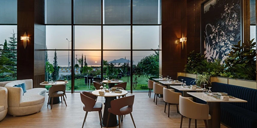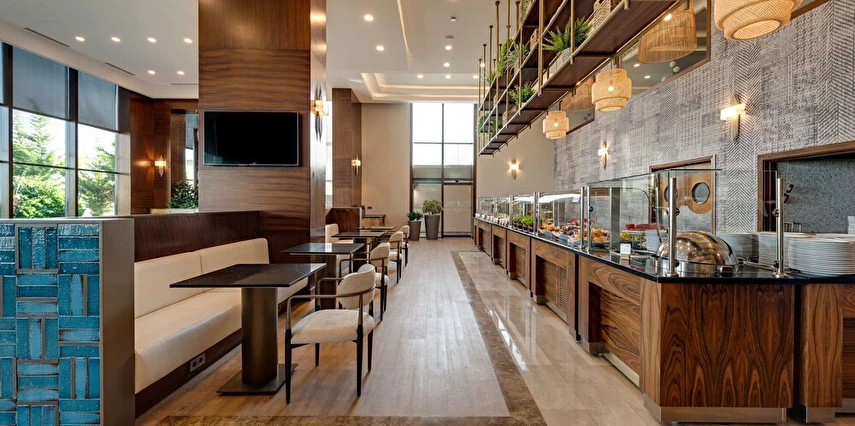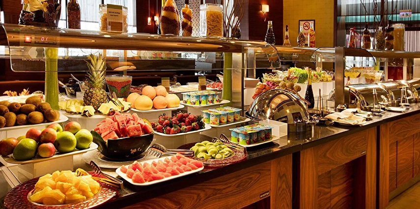 Otel bünyesinde 2 restoran ve 2 bar bulunur. Özellikle açık büfe kahvaltı hem yerel hem uluslararası lezzetlerle dolu geniş seçenekler sunar.
