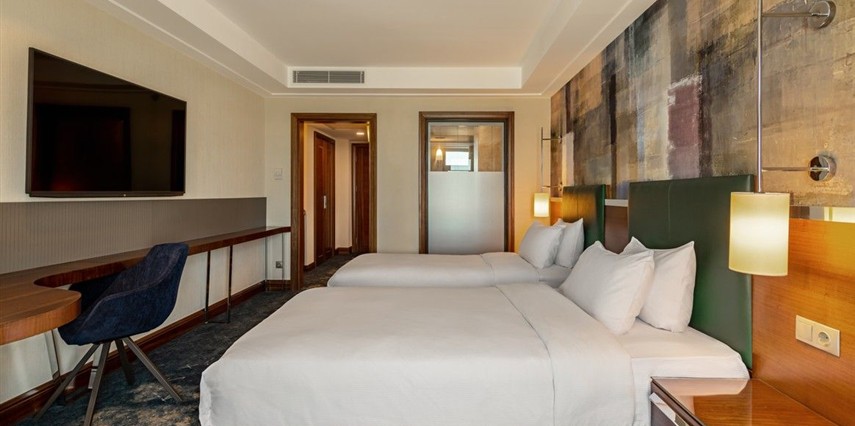 DoubleTree by Hilton Van, Van’ın Edremit bölgesinde Van Gölü manzaralı lüks bir şehir oteli olarak konuklarına hem konforlu tatil hem de verimli iş seyahati deneyimi sunar. Van Ferit Melen Havalimanı’na sadece birkaç dakikalık sürüş mesafesinde bulunan bu tesis, stratejik konumu ve zengin hizmetleriyle Van’da öne çıkan seçeneklerden biridir.